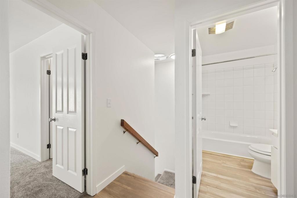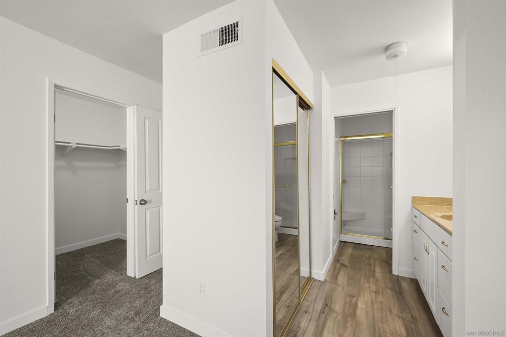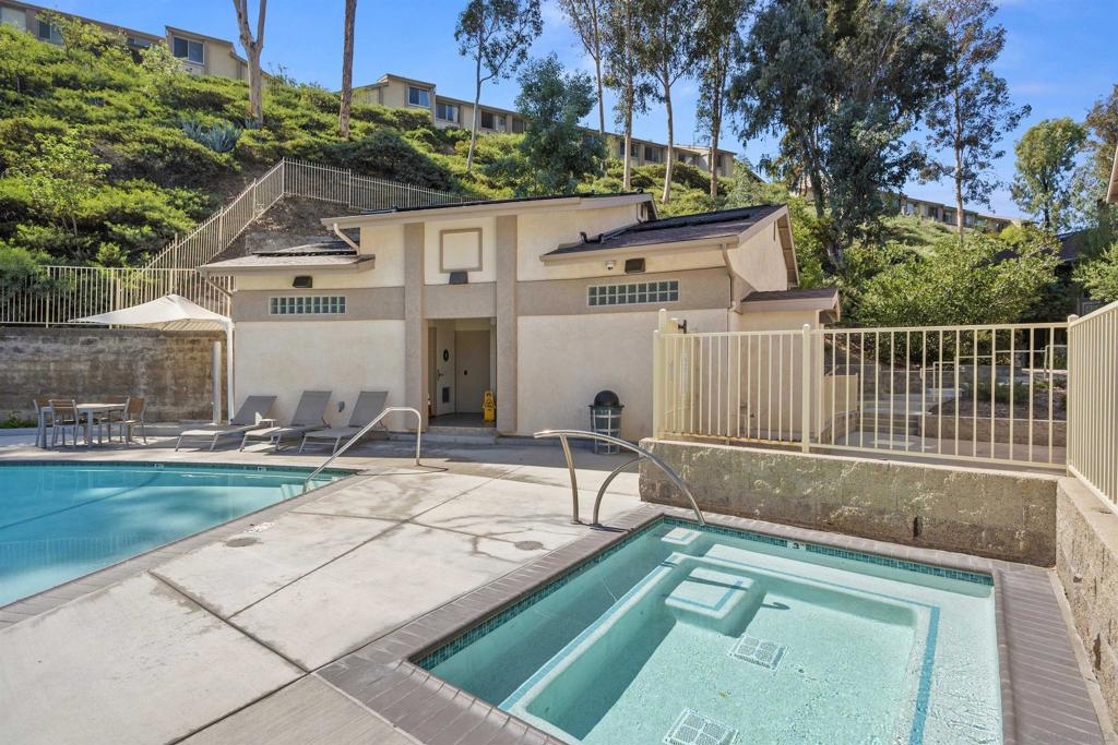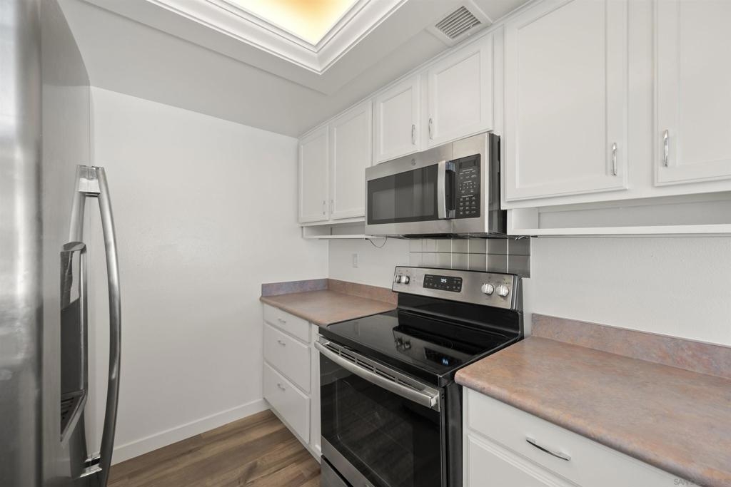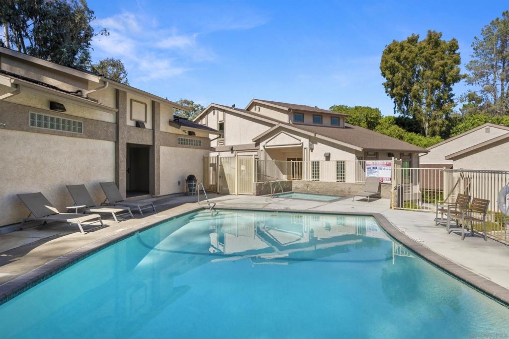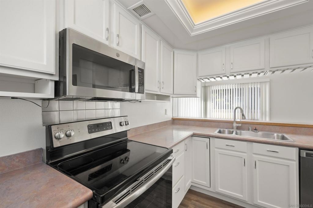 Rare opportunity for an end unit in highly sought after and coveted Strawberry Hills! One of the few PUD's with low HOA's left in San Diego County. Updated two story townhome in the heart of La Mesa with dramatic vaulted ceilings, new paint and quality flooring throughout, black and stainless kitchen appliances. This home features two generous sized bedrooms with ample closet & space. The home's abundance of windows fill the space with warm and inviting natural light. The corner location allows for a serene patio space to enjoy the shade and garden. The full sized side by side laundry facilities are located in the large two car garage with convenient access to the kitchen. This home was originally the three bedroom model and could be converted back with minimal cost or effort.