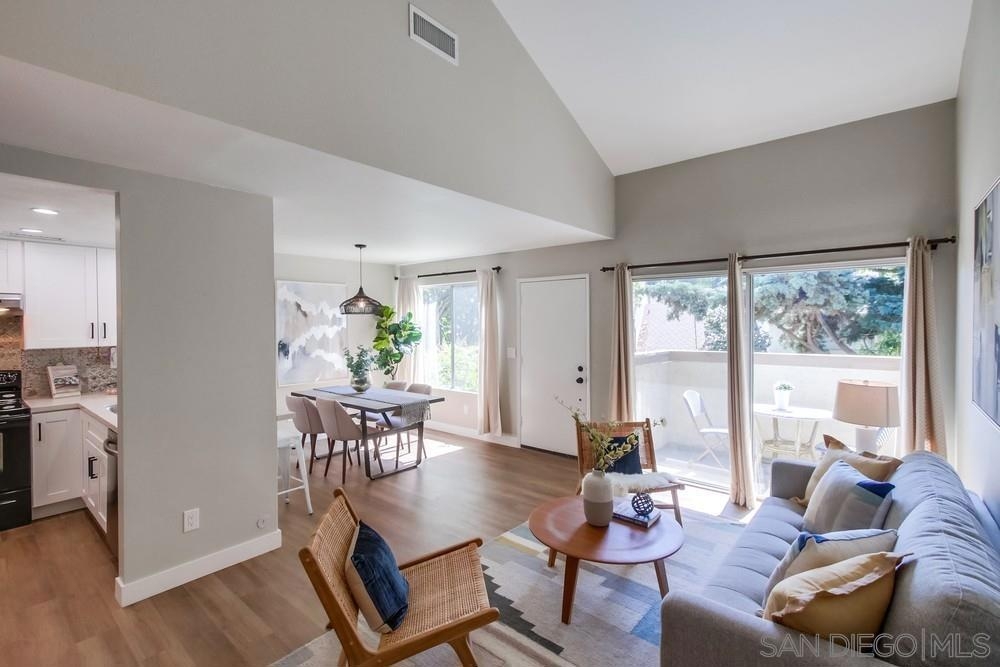 Your chance to live in one of the most coveted communities of La Mesa, Strawberry Hills. Beautifully updated, you'll love the vaulted ceilings, open layout and abundance of natural light. Enjoy the beautiful weather from the private patio or nearby community pool. Cool off on hot summer days with A/C or escape to an oversized primary bedroom with walk in closet and vanity. And don't miss the additional bonus room off the second bedroom for additional storage, an office, yoga room or more. Two car attached garage offers additional convenience. With nearby shopping, restaurants, freeway access and parks, this is a home you don't want to miss.