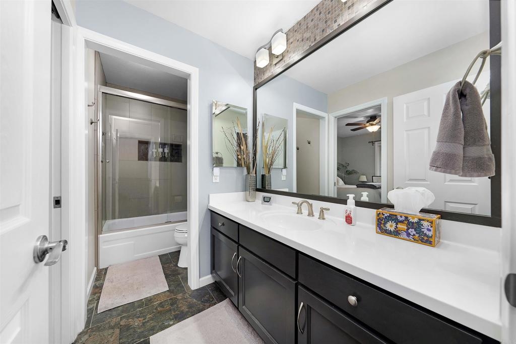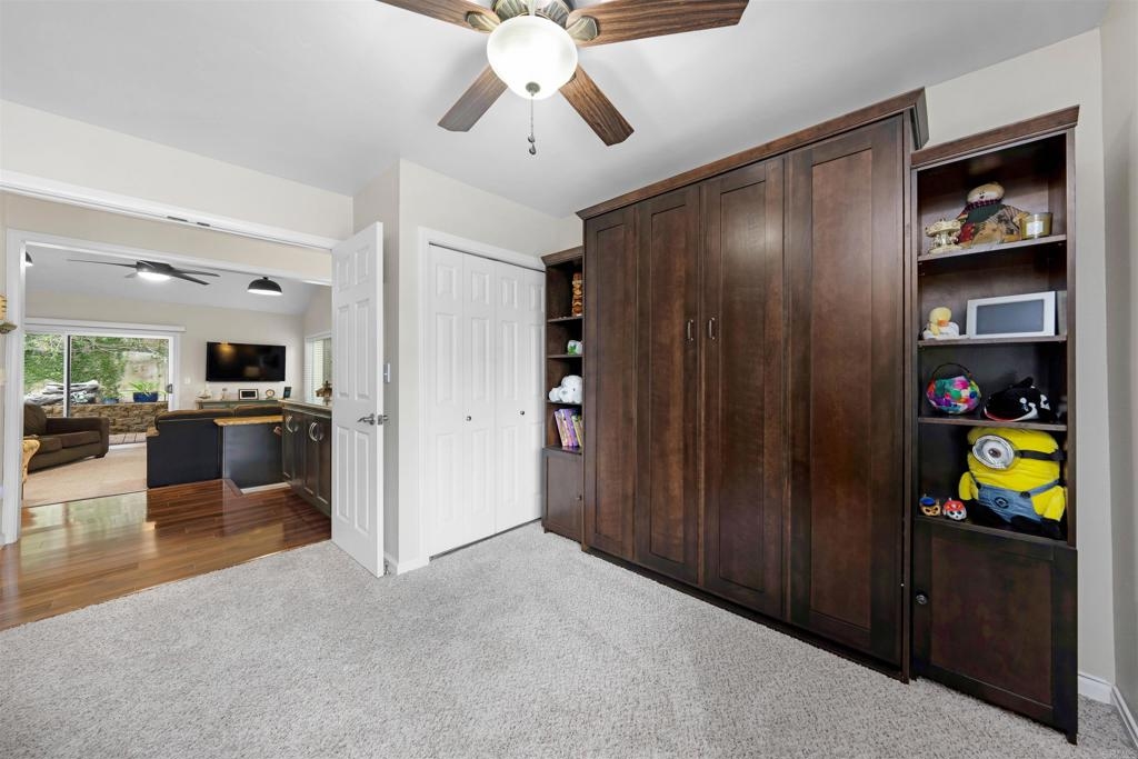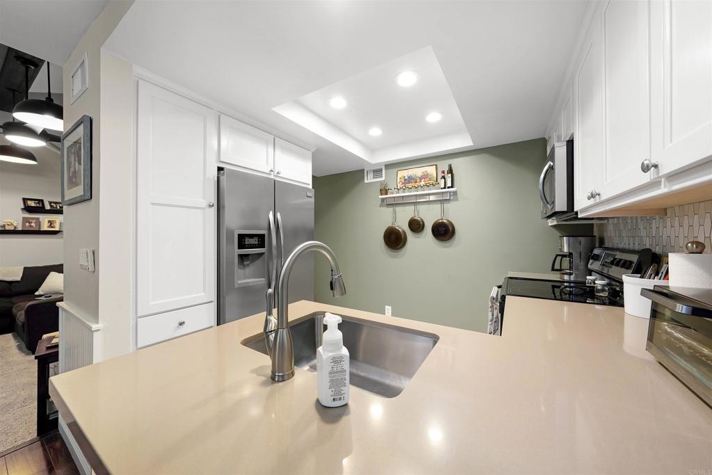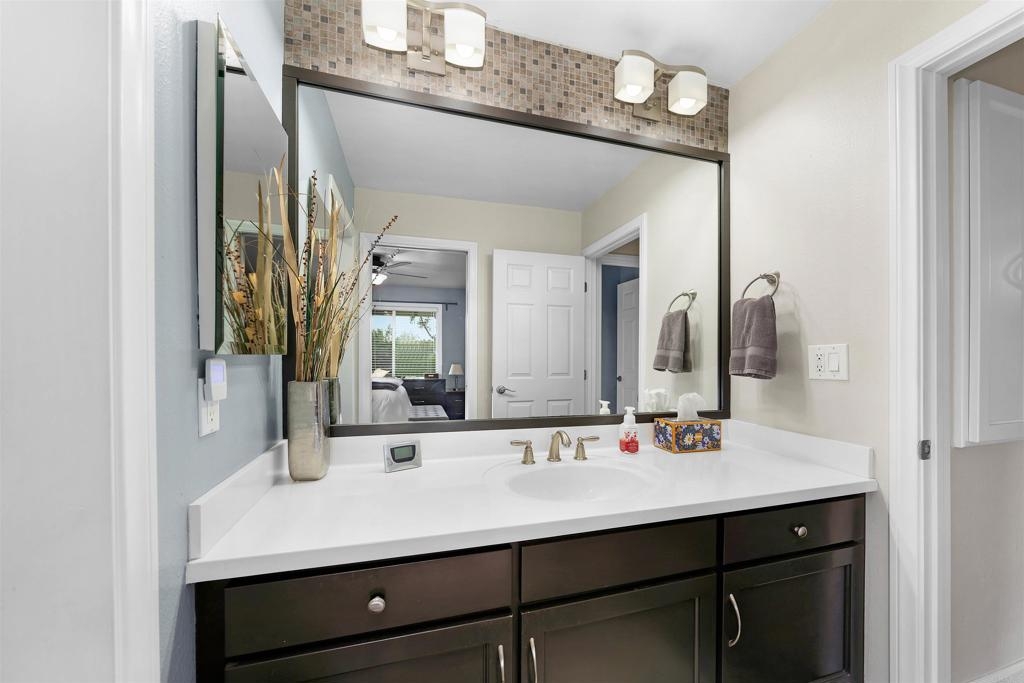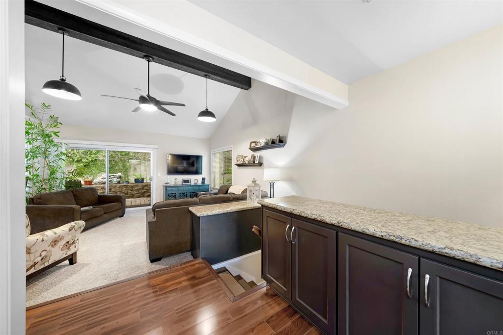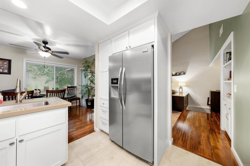 Charming 2-bedroom home nestled in the sought-after community of Strawberry Hills is now available for sale. This residence has undergone a complete transformation, boasting a modern and stylish design plus owned and paid-for solar. The kitchen has been upgraded with white soft-close cabinets, complemented by elegant quartz countertops, creating a sleek and functional space. Upon entering through double doors and up the stairs, you'll be greeted by the airy atmosphere of the vaulted ceiling in the main living area. The living room seamlessly connects to a tranquil patio overlooking a lush greenbelt, featuring wood decking for a perfect outdoor retreat. A sliding door from the living room enhances the indoor-outdoor flow, allowing for plenty of natural light to fill the space. Windows are dual pane with high performance window film plus owned and paid-for solar to help keep the electric bills down! This home comes with a convenient 2-car garage that includes a finished storage/workshop area, providing ample space for your storage needs or creative pursuits. Whether you're seeking a cozy haven or an entertainer's delight, this remodeled home in Strawberry Hills offers a perfect blend of comfort and style. The community offers 2 pools, a clubhouse, spa and fitness center. Don't miss the opportunity to make this beautifully updated residence your own.