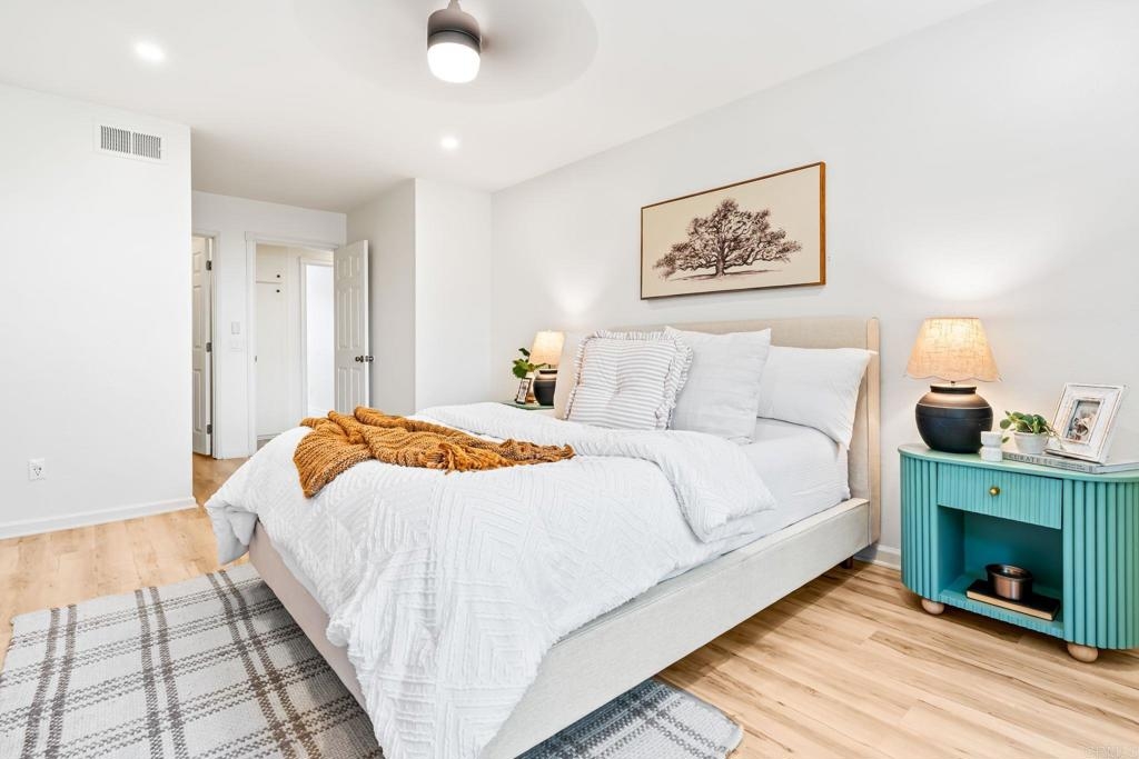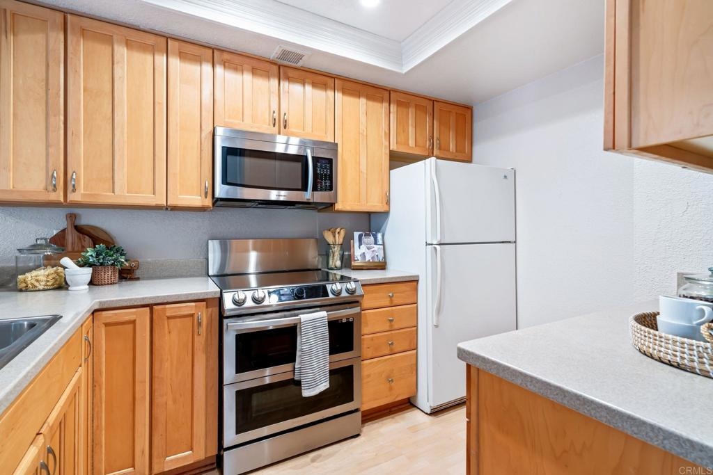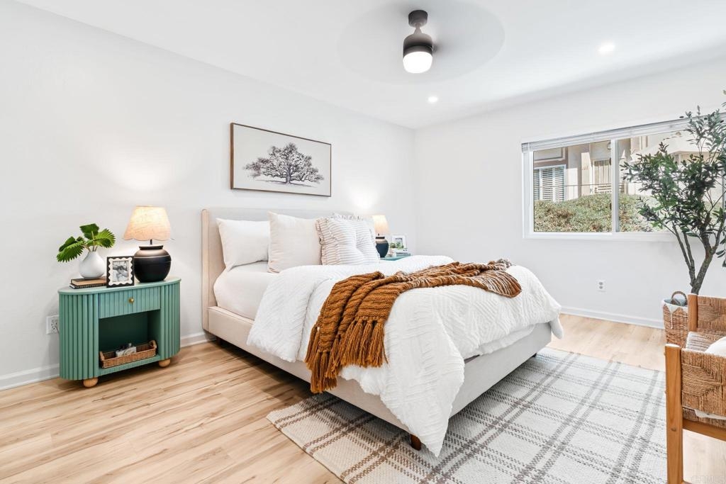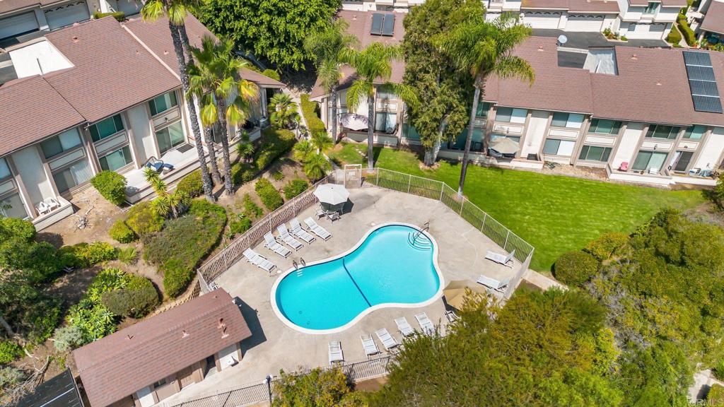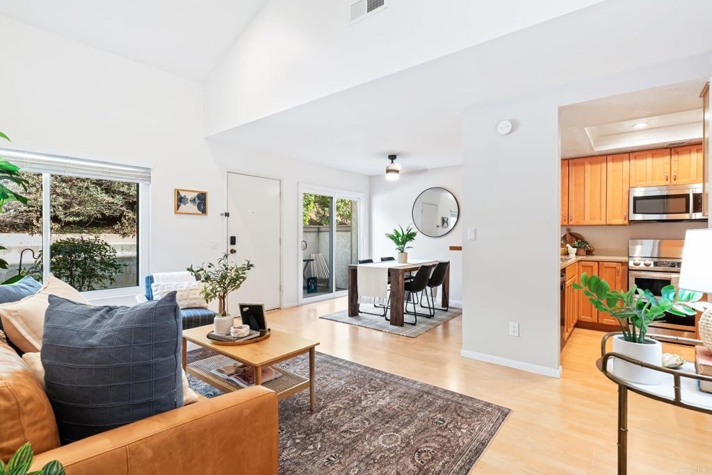New Price! Highly sought-after Strawberry Hills townhome in central La Mesa. Living areas feature vaulted ceilings, recessed lighting, and laminate flooring, with a convenient half bath for guests downstairs. Dining area opens to a quaint front patio. Upstairs, the oversized primary bedroom offers two closets—one a walk-in—plus generous hallway linen storage. Two additional bedrooms share a full bath. Attached two-car garage with laundry area, transferable solar ownership, at $198/month. The Community amenities include a pool, spa, and newer workout room, all with mature landscaping and a low $425 HOA. Easy access to Grossmont Center, hospitals, Costco, and SDSU.