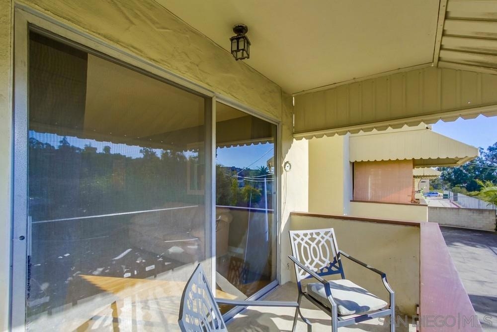 LA MESA VILLAGE!***Stunning 2 Bed/ 1.5 Ba condo!! 3 blocks to village shops, pubs, restaurants and trolly!! Even closer to Collier Park! Remodeled Kitchen with Espresso Cabinets, Upgraded Granite Countertops, Subway Tile, Backsplash, Travertine Floors. Hardwood Floors in Living, Dining and Bedrooms, Mid Century features maintained. Private Balcony looking out to hills and trees and TROLLY LINE. Front door opens out to large grassy courtyard. Jack, Janet and Chrissy would live here!! How about you?? Other Fees: 0 Sewer: Sewer Connected Topography: GSL