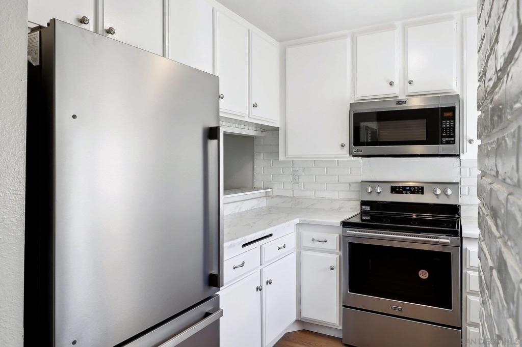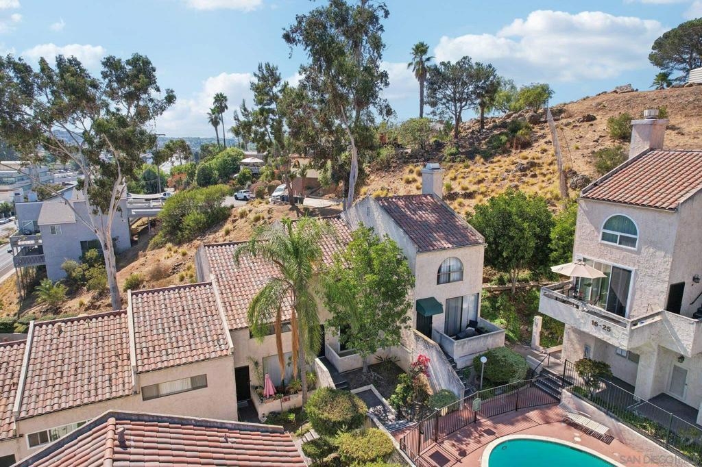 Welcome to this beautifully remodeled 2-bedroom, 1.5-bathroom townhome, where modern elegance meets comfort. Nestled in a serene gated complex, this home boasts inviting views from both bedrooms, allowing you to wake up to scenery every day. Step inside to discover an open-concept living area filled with natural light. The brand-new kitchen features high-end stainless steel appliances, sleek cabinetry, and stylish new countertops, perfect for culinary enthusiasts. The spacious living room is ideal for relaxation and entertaining, seamlessly flowing into your private outdoor patio space featuring a brand new dual pane sliding glass patio door. Relax by the sparkling pool while all your worries melt away. Both upstairs bedrooms have vaulted ceilings and are generously sized, offering ample closet space and large windows that frame picturesque views. Washer and dryer hookups conveniently located in the upstairs bedroom. Both bathrooms are tastefully remodeled, showcasing brand new lighting, new laminate flooring, new countertops, new bathtub, and new contemporary fixtures. Enjoy the convenience of nearby amenities, including multiple shopping, and dining options. Less than a 5 minute walk to Starbucks, Panda Express and Vons. Or take a 7 minute stroll to the La Mesa downtown area and the trolley station. Easy freeway access to the CA8, 94, and 125! This amazing townhome combines modern finishes with a prime location, making it the perfect place to call home. Don't miss your chance to experience living at La Mesa’s finest townhome!