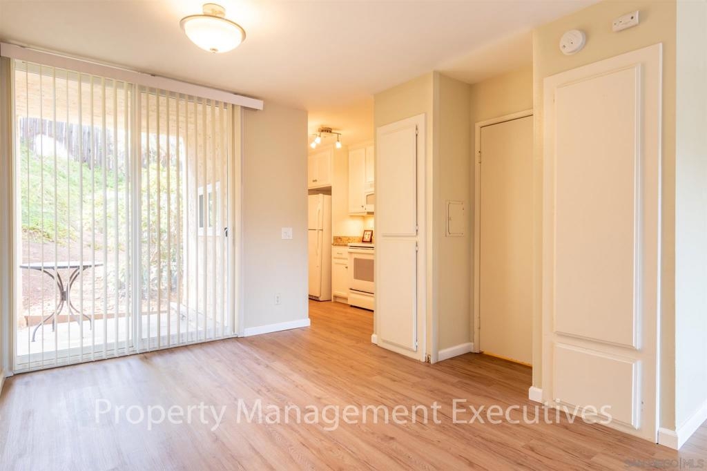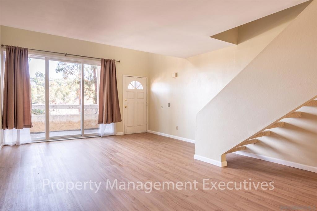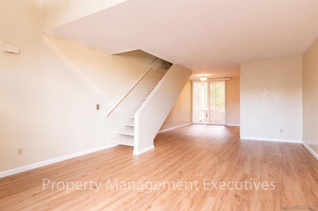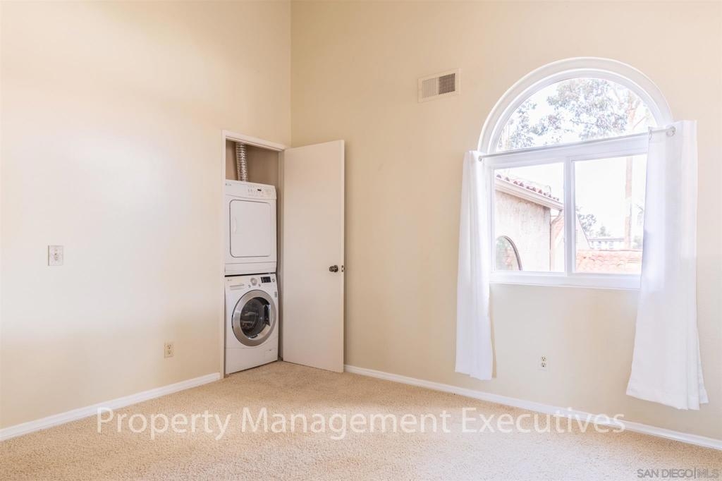Beautiful townhouse with neighborhood views near downtown La Mesa area. Central Heat & A/C. Large living room with nice flooring throughout. Front and back patio areas. Kitchen has granite counters and includes stove, dishwasher, refrigerator and microwave. 1/2 bath located on 1st floor. Upstairs includes spacious master and loft bedroom with lots of light (room that can look down on living room, but still has privacy). Stackable Washer/Dryer located in the loft bedroom. Pets allowed up to 25lbs. Equipment: Dryer, Washer Other Fees: 0 Sewer: Sewer Connected Topography: SSLP