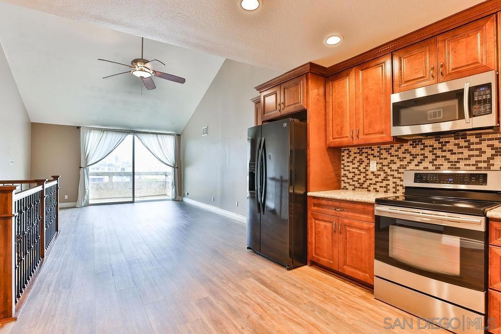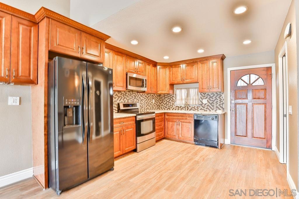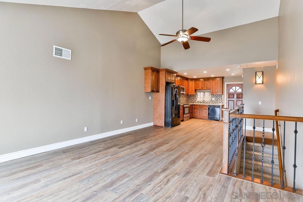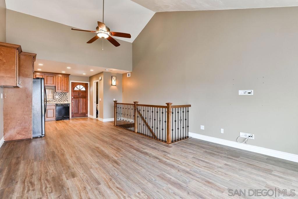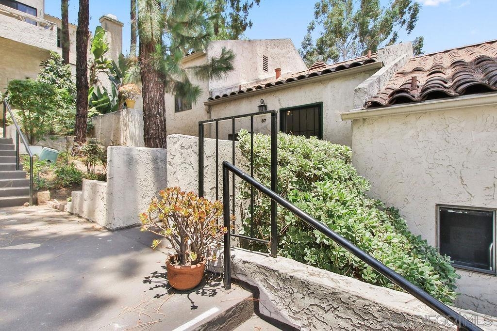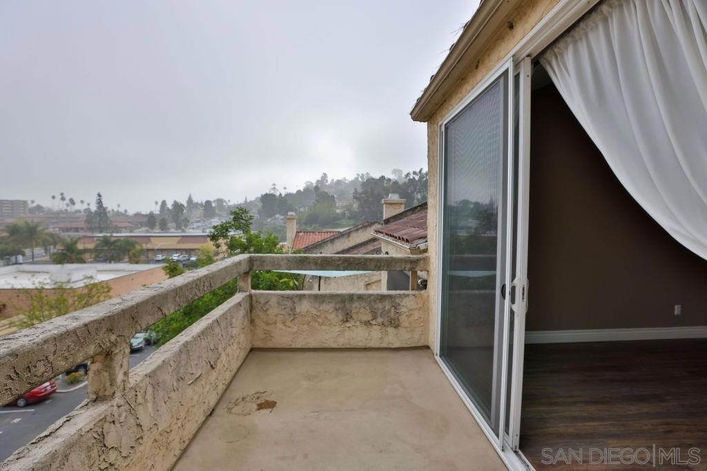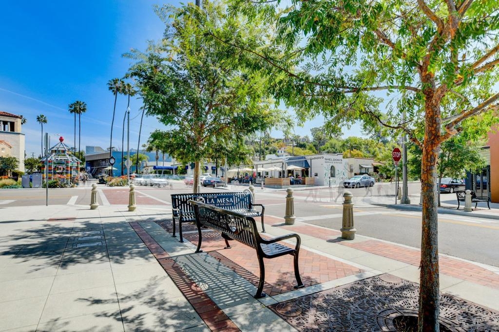 Bright & Airy La Mesa Village Townhouse! No one above or below you. Upstairs has been totally opened up for great flow from the kitchen through living room out to your enclosed patio with views of Mt. Helix. Remodeled oversized kitchen with cherry wood cabinets, black/stainless steel appliances, and tile backsplash. Fully repainted, laminate flooring, and custom wrought iron banister complete the upscale look. AC and furnace only a few years old. Best unit in the complex!