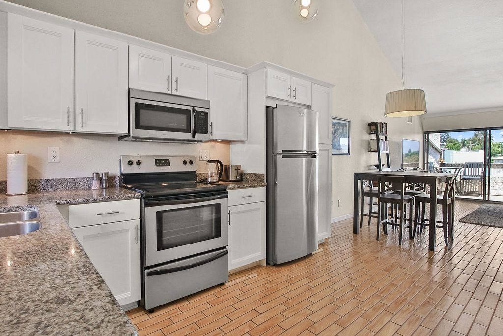 Bright & Airy La Mesa Village Townhouse! No one above or below you. Upstairs has been totally opened up for great flow from the kitchen through living room out to your enclosed patio with views of The Village and Mt. Helix. Living area has pristine Italian Porcelain tile and automatic sun shade to keep you cool. Remodeled kitchen with white Shaker cabinets and stainless steel appliances. New high efficiency Trane AC & Heat with built in Nest system. New stacked in-unit laundry. Best unit in the complex!. Neighborhoods: La Mesa Village Complex Features: ,,, Equipment: Dryer, Range/Oven, Washer Other Fees: 0 Sewer: Sewer Connected Topography: GSL