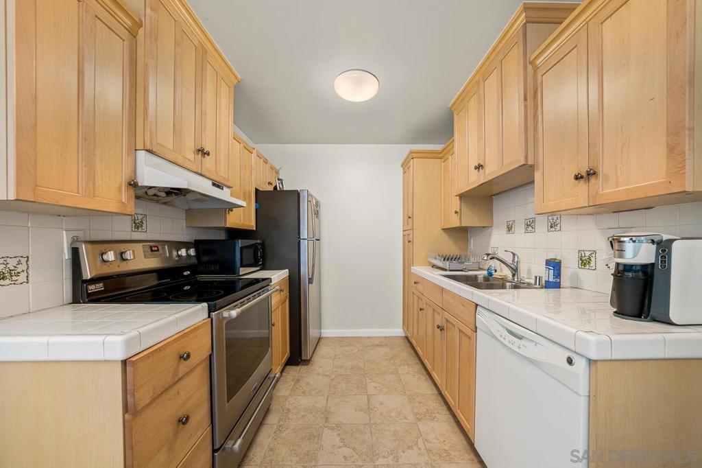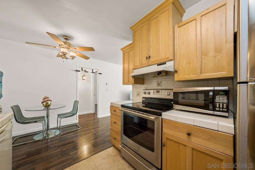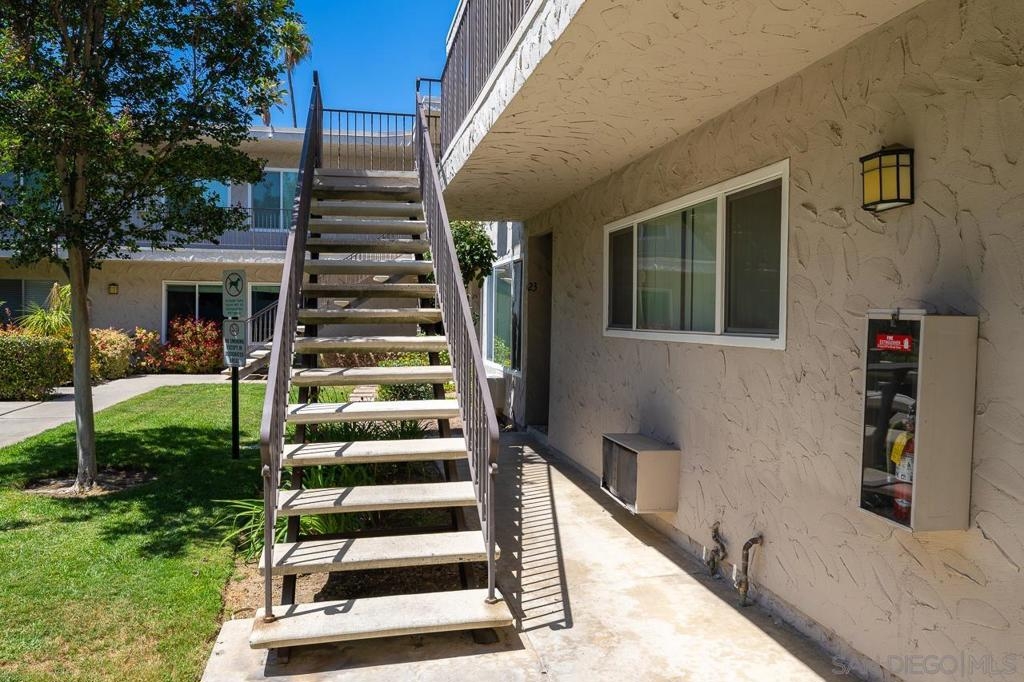 Gorgeously updated first-floor condo in the heart of La Mesa. This 1 bed / 1 bath condo features an open floor-plan with tons of natural light. Complete with tastefully updated kitchen and bath, new laminate flooring in the master and dual A/C units, one in living room that heats and cools, and one in master bedroom. Community laundry just behind the unit. Sparkling pool and BBQ area just around the corner from your front door. Assigned covered parking space includes additional storage. Ideal quiet cul-de-sac location. This unit is a must see! Sewer: Sewer Connected Topography: LL