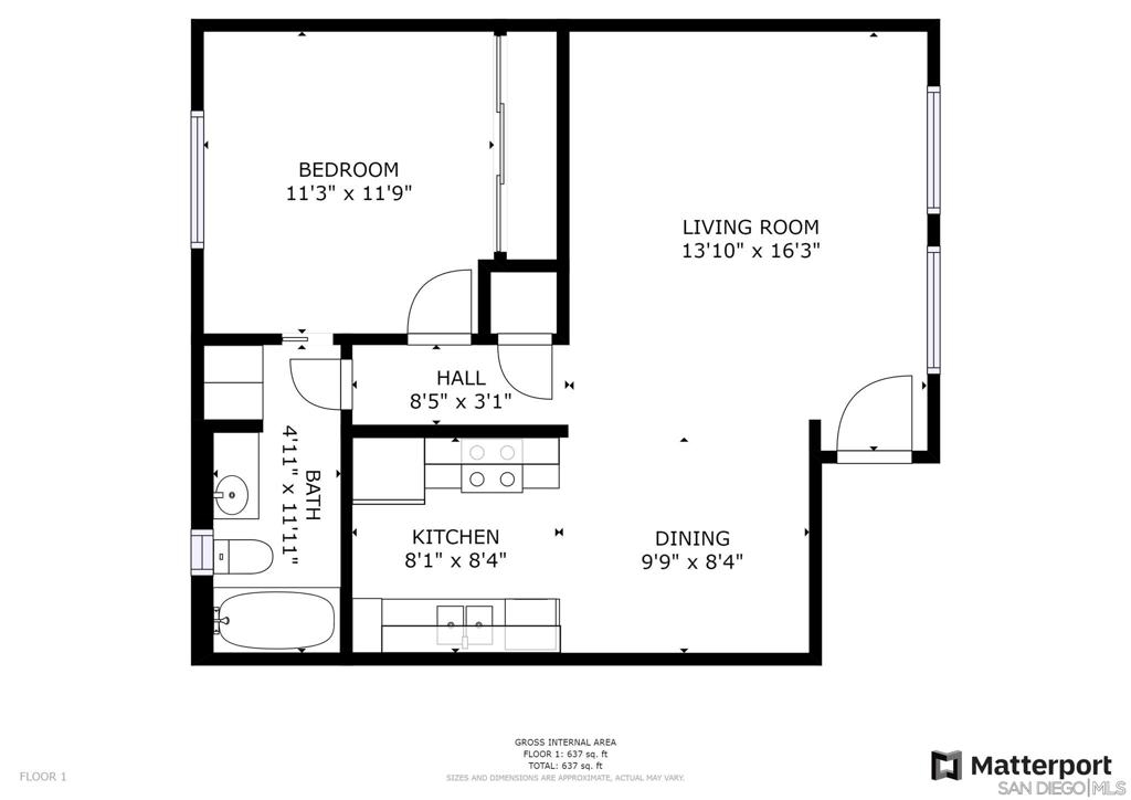 • 1 full bath
