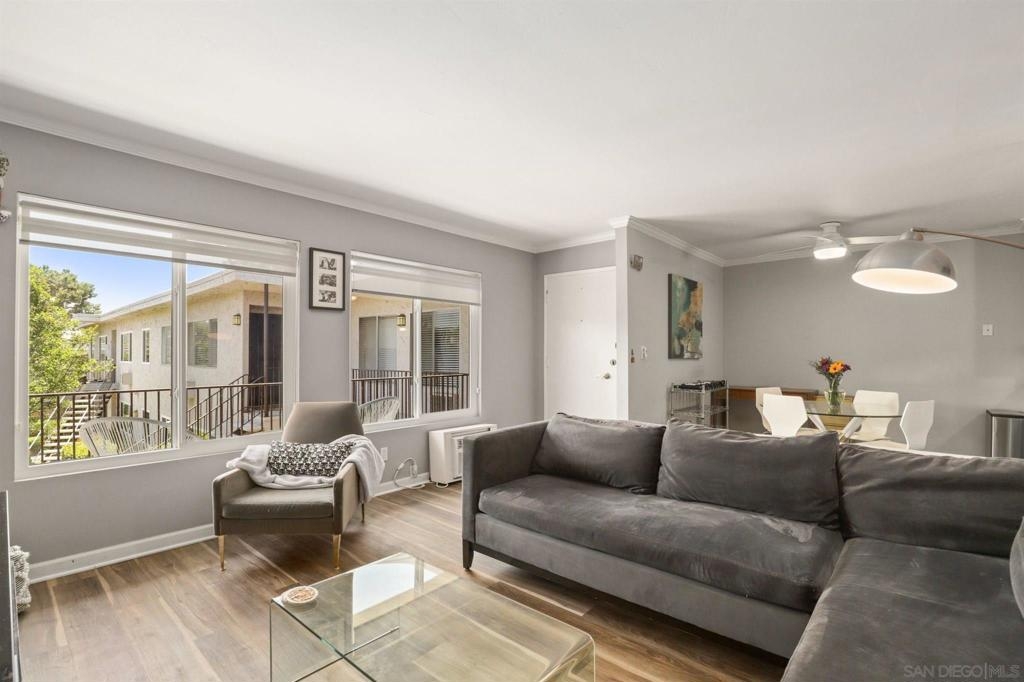 This move-in-ready one bedroom La Mesa condo is ready for new owners! This second-floor unit has been updated with crown molding, new windows, fresh paint, new lighting fixtures, and vinyl wood flooring throughout. The spacious living room looks over the lush green courtyard and enjoys beautiful natural lighting. The bedroom is located in the back of the unit for added privacy. The full bathroom comes with ample storage space and access from the bedroom for your convenience or the hallway for guests. This home has a functional layout and great natural flow. The Villa del Sur gated community sits at the end of a quiet cul-de-sac. Amenities include a community pool & spa with built-in BBQs to be enjoyed in the warmer months, laundry facilities, lots of guest parking, and a rec room. It’s just a short drive or a trolley ride to shopping and dining and minutes away from freeways, and Lake Murray. Don’t miss this opportunity! Complex Features: ,,, Sewer: Sewer Connected