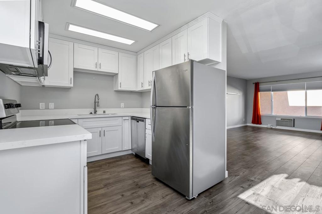 Rare availability in Villa Elena. This property is a true La Mesa gem near the Village, top rated schools, critically acclaimed eateries, shopping, public transportation, and nearby SDSU. In addition to the many unit updates, a separate storage closet is available on the ground level. This end unit was recently remodeled with neutral colors, wide planked laminate flooring & quartz countertops. Also features an "end unit" parking spot with no parking space to one side. Turn-key ready for fast move-in. Quartz countertops, unique vanity light fixtures, stainless steel appliances, wide planked laminate flooring and updated cabinetry throughout. Complex Features: ,,, Other Fees: 0 Sewer: Sewer Connected Topography: LL