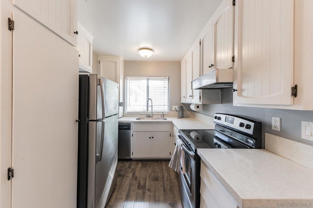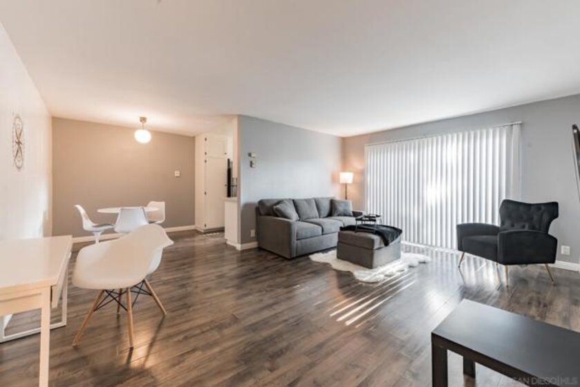 1bed/bath condo in quiet La Mesa community. Park like setting, low HOA's, close to shopping and restaurants. Top level unit, with view of valley out of bedroom window. Tons of natural light, and privacy thru windows. Balcony, off street parking. Community has pool/spa, car wash, community laundry. The unit is currently listed on Airbnb as a furnished monthly rental and furniture can convey. Move in or run it as you own business!
