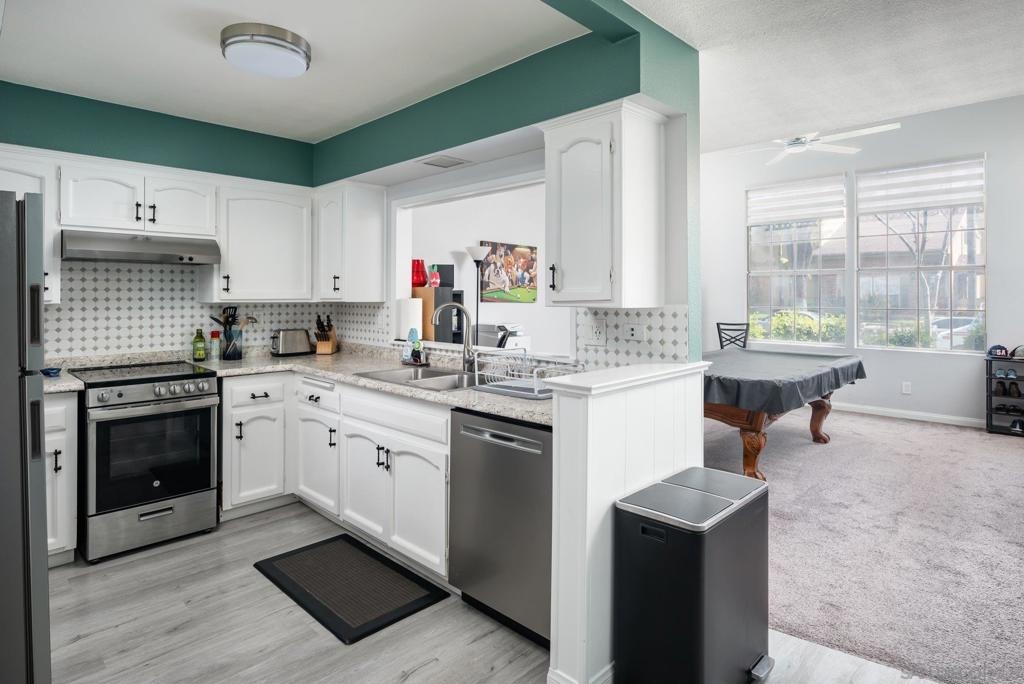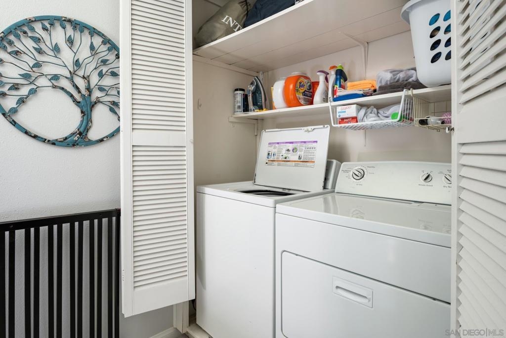 Terrific oversized 2 bed 2 bath Townhome in the highly coveted Williamsburg Square complex in La Mesa. Updated Kitchen with Stainless Steel Appliances, Newer Flooring and Upgraded Bathrooms with Quartz Countertops! THE WORKS! Open floorplan with lots of natural light. Ceiling Fans throughout. Laundry in unit! Garage with additional storage. Beautiful Community Pool! VA Approved! Easy Freeway Access. Close to Schools, Parks, and neighborhood stores. Excellent Opportunity for a first-time buyer, or investor. Equipment: Range/Oven Sewer: Sewer Connected Topography: LL
