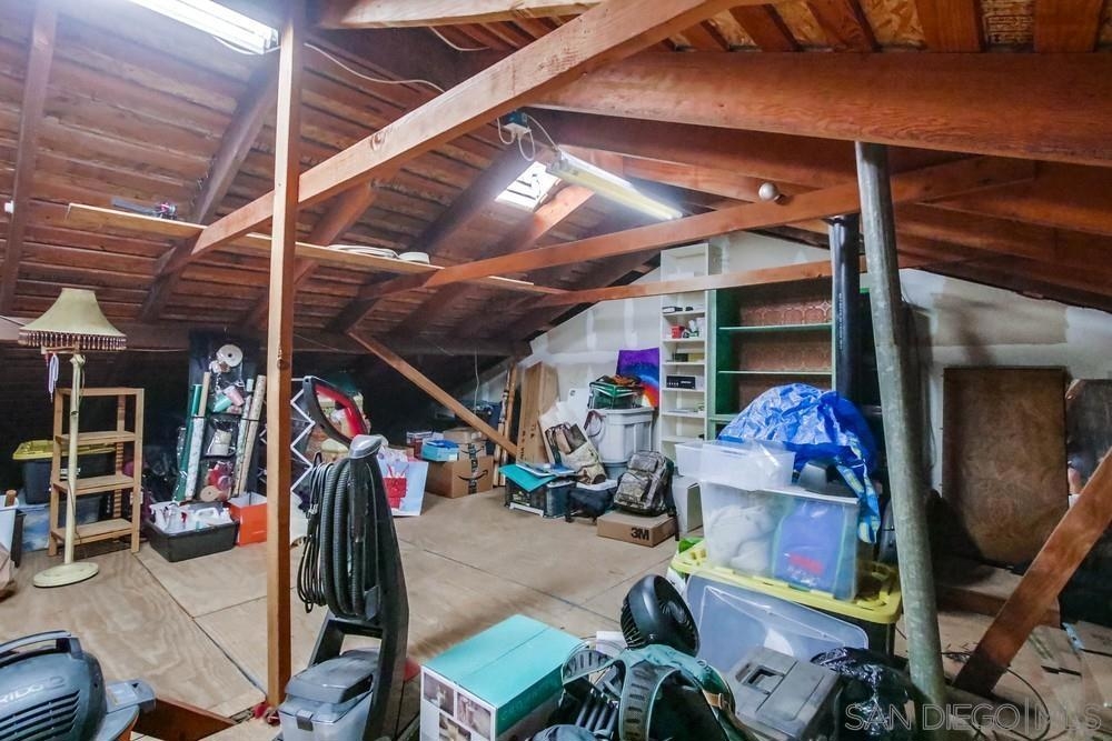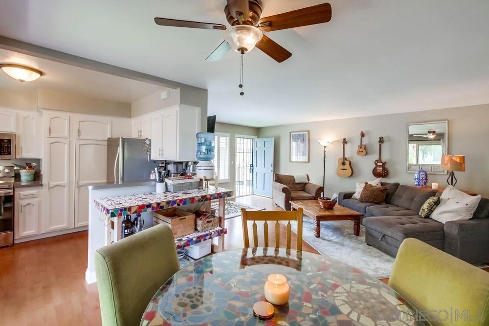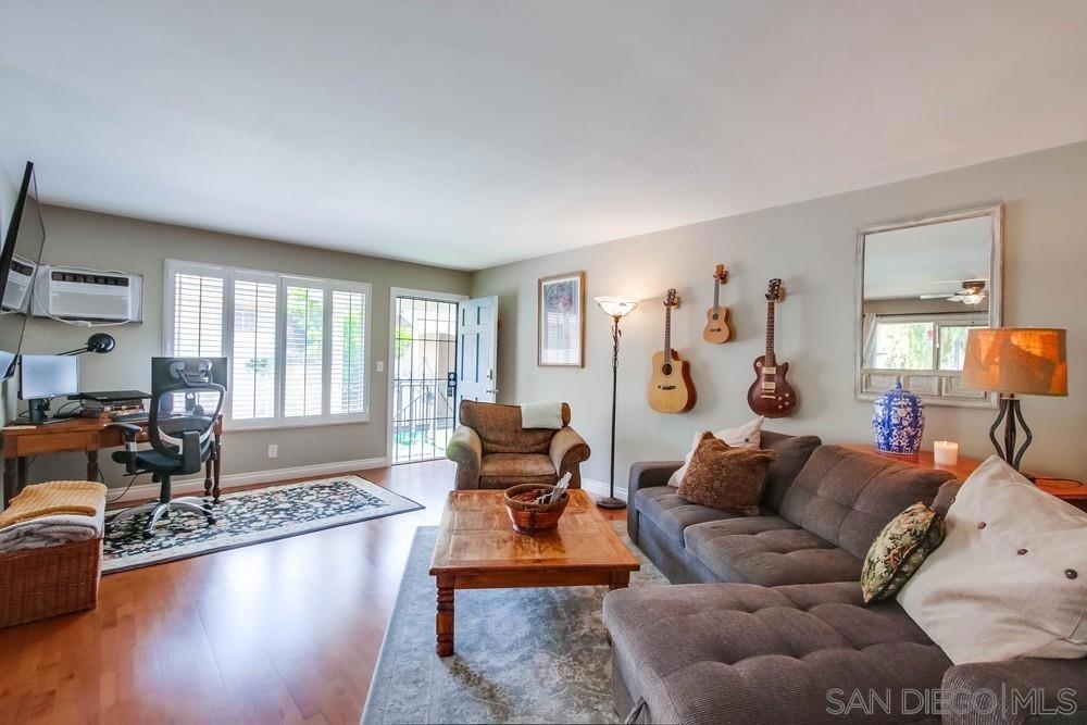 Turn key top floor condo with open floor plan, tons of storage, and garage! One of the most adorable streets in La Mesa- located near La Mesa Village, groceries, shops. The kitchen features white cabinets, gray quartz counters and new stainless steel appliances. Balcony offers views of beautifully established community and garden. Pool and laundry in community. Both bedrooms and closets are generously sized and the attic is HUGE! Not currently VA or FHA approved.