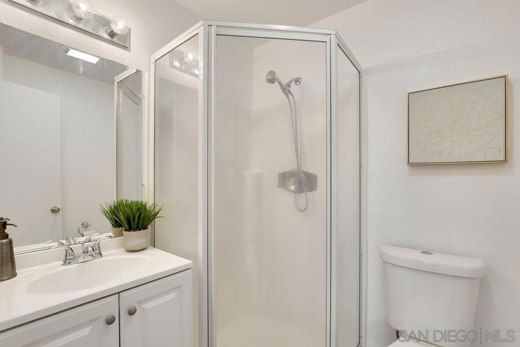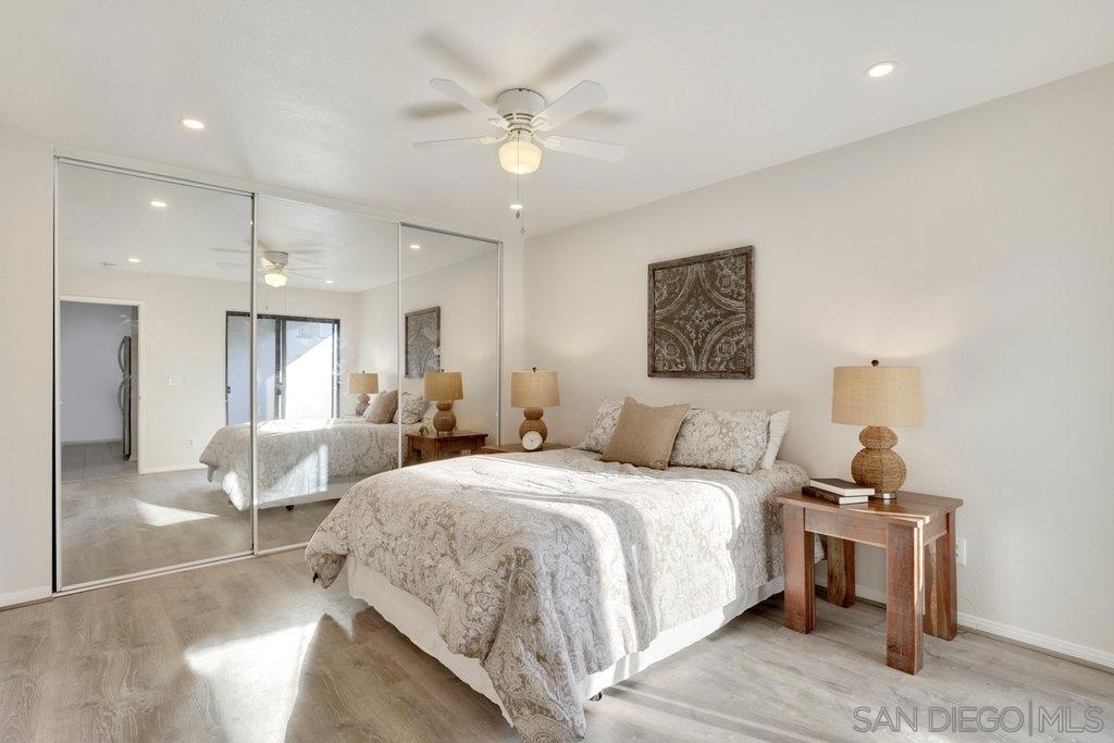 Charming and updated, move-in ready condominium in Windsor Chalet. Home features include new interior paint, new cabinetry throughout, and recessed lighting. Living room is open to the dining area and kitchen and comes equipped with a cozy fireplace and ceiling fan. The kitchen includes white cabinetry, stainless steel appliances, and quartz countertops. Down the hall are two bedrooms each with updated ensuite baths. Other features of the home are washer and dryer included in unit, 1 shared garage space and 1 assigned parking spot, and low HOA fees which include water and trash. Close proximity to downtown La Mesa Village, restaurants, San Diego State University, and transportation. Equipment: Dryer, Washer Other Fees: 0 Sewer: Sewer Connected Topography: LL
