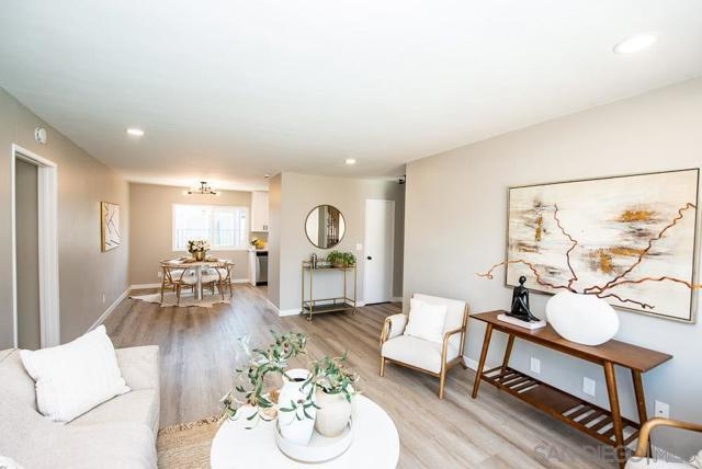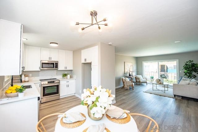 Fantastic opportunity in La Mesa, perfect for rental income or first-time homebuyer. Most afforadable 3br/2ba condo in the heart of La Mesa! Proximity to SDSU just 7-8 minute drive away! Complex accepts conventional and cash financing (no FHA), possibly VA spot approval. Property qualifies for a loan program requiring only 3% down and no PMI. Beautiful upper level 3 bedroom/2 bath residence with no one below you! Completely remodeled - this unit features impeccable finishes with a light modern touch! Newer windows offers lots of natural light throughout. Upgraded kitchen includes new stainless steel appliances & spacious adjoinining eat-in area. Villa Elena complex features a community pool & clubhouse to enjoy along with onsite laundry facilities. Low HOA fees also covers water and trash! One assigned parking spot (# I) with ample street parking. Centrally located & close distance to shops, restaurants and freeways. Located across from top-rated Helix High School. (Interior laundry possibleoption with architectural review and approval by HOA Board)