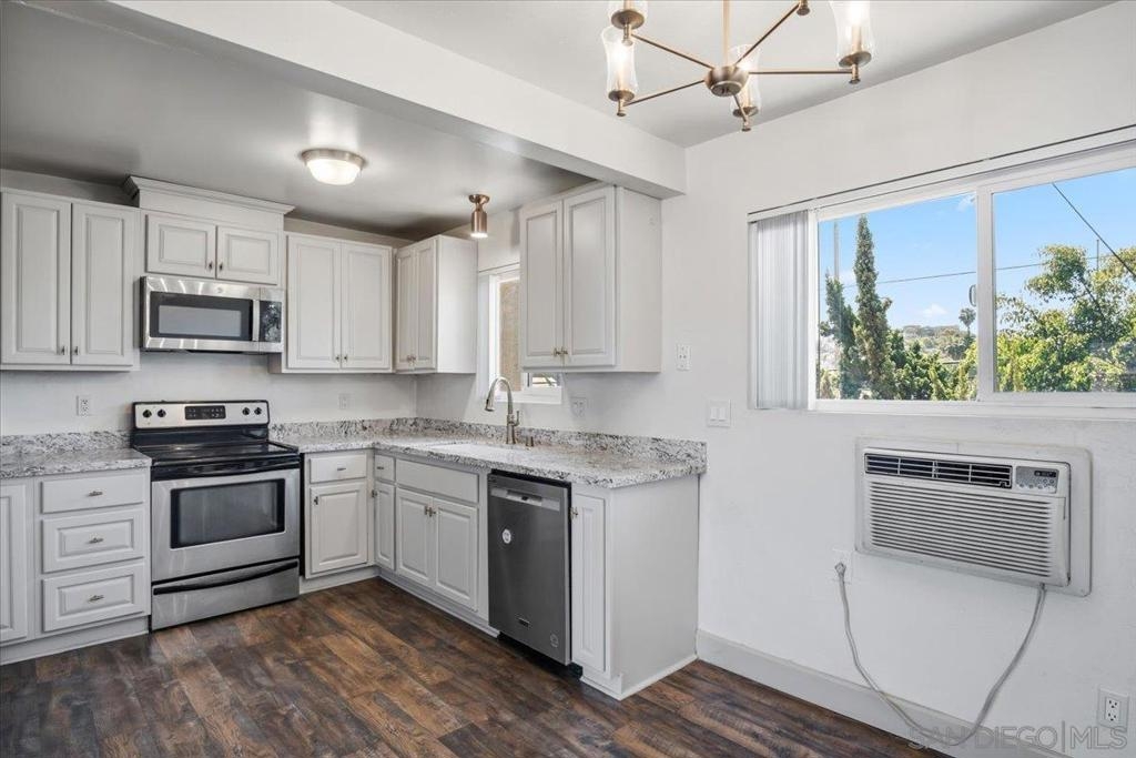 This turn-key home represents an exceptional opportunity for a first-time buyer to enter the market at the most competitive price point for a three-bedroom, two-bathroom residence centrally-located in La Mesa. Practical needs are well-addressed by a two-car garage, an additional off-street parking space in the back, and ample guest parking on the street. Offering a rare sense of privacy, the residence features only one attached neighbor below, with no shared side walls. The interior has been thoughtfully updated with newer flooring and fixtures, fresh paint, modern appliances, stylish granite countertops, and refinished shower tubs, complimented by double-pane windows in the bedrooms and main living area to ensure a quiet and more energy-efficient environment. The large balcony off the living room provides a peaceful space to enjoy views of the surrounding mountains and the community pool, with bedroom views of the lush foliage. The location offers great convenience, situated within walking distance of local shopping, diverse eateries, Boy's & Girl's Club, Highwood Park, and highly regarded schools. This includes the prestigious Helix Charter High School, widely recognized for academic excellence and storied athletic programs. This home combines modern updates with a prime location, making it the ideal starter property for those seeking both value and quality.