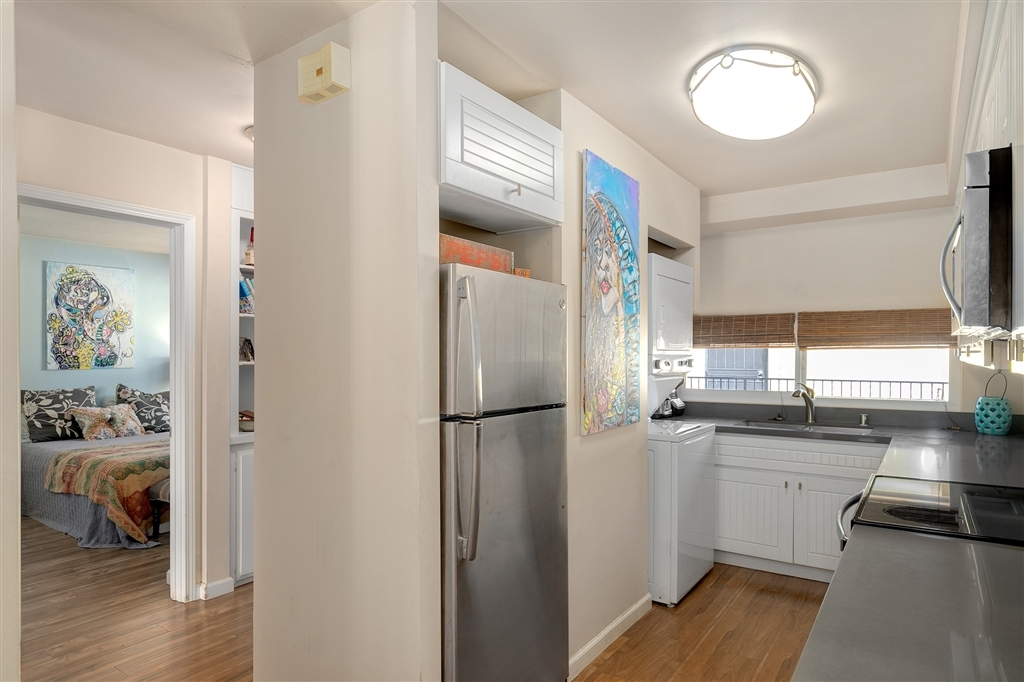 Prepare to fall in love with this top floor condo with a West facing balcony giving you breathtaking sunsets all year long. As you enter you will gaze upon gorgeous low maintenance wood laminate flooring covering the light and bright open floor plan. The kitchen has a window that bathes the space in natural light offers an abundance of counter space, crisp, white cabinetry stainless steel appliances, a large pantry, and space for a stackable washer/dryer. Both bedrooms enjoy the convenience of a shared bathroom for ease of daily living. For added convenience, a half bathroom will eliminate morning mirror wars. Open the balcony door wide for the ultimate in indoor outdoor living all year long. When the weather needs a little assistance, there is an A/C wall unit in the living room to pitch in. Enjoy electric radiant heat on those rare chilly San Diego days. The complex allows 1 covered Parking space plus storage cabinets too. You can't beat the location! Only 3 blocks south of La Mesa Village, where quaint shops, trendy restaurants, swanky coffee shops, breweries, and the trolley line are within reach. You will be able to enjoy the La Mesa Farmers Market every Friday from 3-7pm or visit the Railway Museum . Don't let this opportunity pass you by!. Neighborhoods: La Mesa Village Equipment: Dryer, Washer Other Fees: 0 Topography: LL