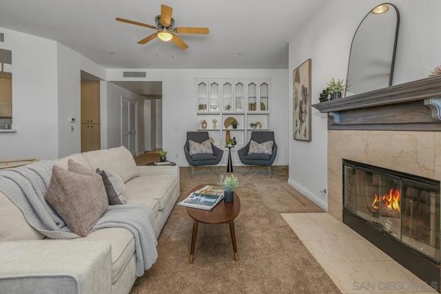 Welcome to your spacious retreat in the heart of La Mesa! This light-filled condo offers the perfect blend of comfort and convenience, all just steps from the Village. From your private patio, you can see the charming shops and restaurants that make this neighborhood so desirable — giving you that perfect balance of lively city energy and a cozy home retreat. Inside, you’ll find a thoughtfully designed floor plan with neutral paint tones, an inviting fireplace, and custom built-in bookshelves in the living room. The open kitchen flows seamlessly into the dining and living areas, while large windows fill the space with natural light. Enjoy in-unit laundry for everyday convenience. Grab coffee at Public Square, enjoy craft beer at Helix Brewing, or savor dinner at Farmer’s Table — all just steps from your door. Plus, with the Village farmers market and local shops nearby, you’ll love having everything you need right at your fingertips. Whether you’re enjoying quiet evenings by the fireplace or heading out for a night in the Village, this condo places you in the center of it all. Parking – 219 has one assigned space, also labeled #219. A second vehicle may be parked with permit in the double or triple lettered spaces. HOA Fee Includes: Water, sewer, trash, WIFI, Basic Cable