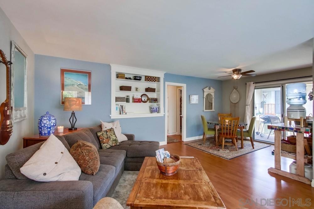 Turn key top floor condo with open floor plan, tons of storage, and garage! One of the most adorable streets in La Mesa- located near La Mesa Village, groceries, shops. The kitchen features white cabinets, gray quartz counters and new stainless steel appliances. Balcony offers views of beautifully established community and garden. Pool and laundry in community. Both bedrooms and closets are generously sized and the attic is HUGE! Not currently VA or FHA approved.