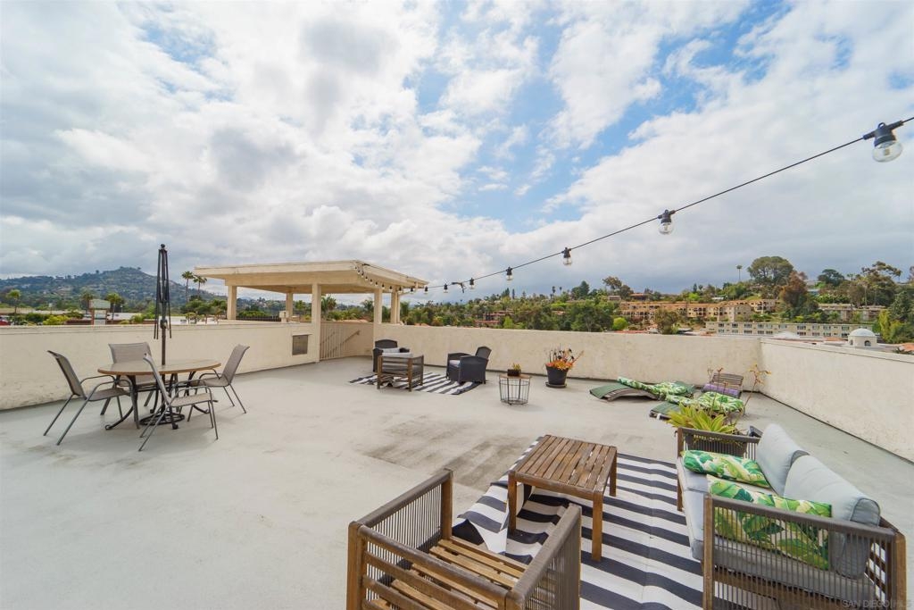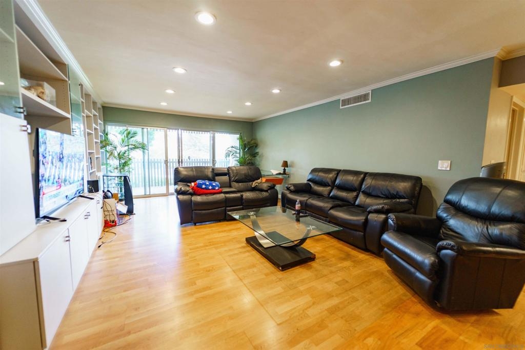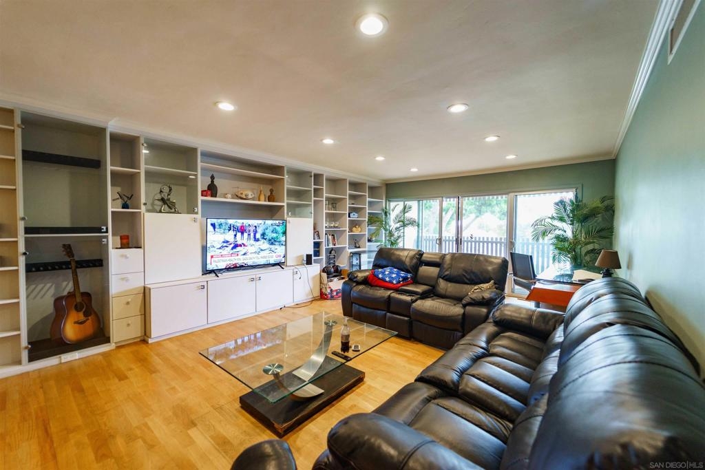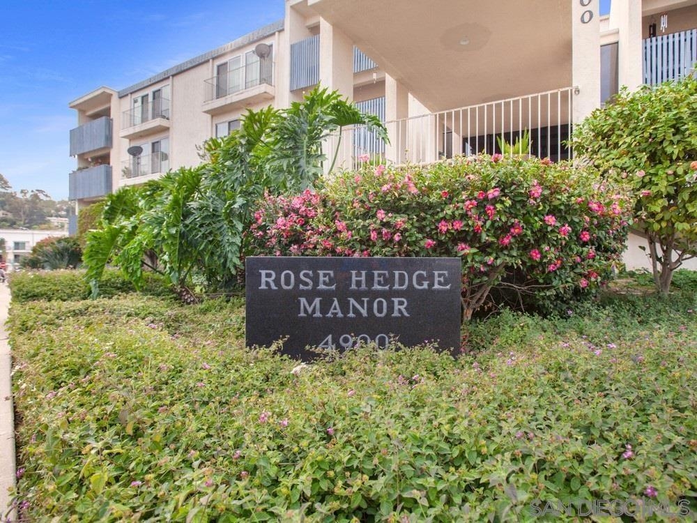 This unique first story condominium is located in the highly sought-after Rose Hedge Manor complex. With only 1 neighbor and located conveniently near the entry to the complex, the unit features a large, functional floorplan. The living room offers a built-in entertainment system with an abundance of shelving and storage. The living room connects to a private terrace, comes equipped with shades and an outdoor ceiling fan. The condo features wood floors throughout. dual master bedrooms, ample natural sunlight. central AC/ heating system recently installed. The location is highly desirable, the school systems are superior, and historic La Mesa Village is walking distance from the property!