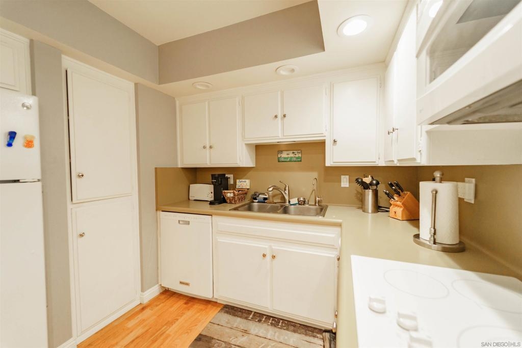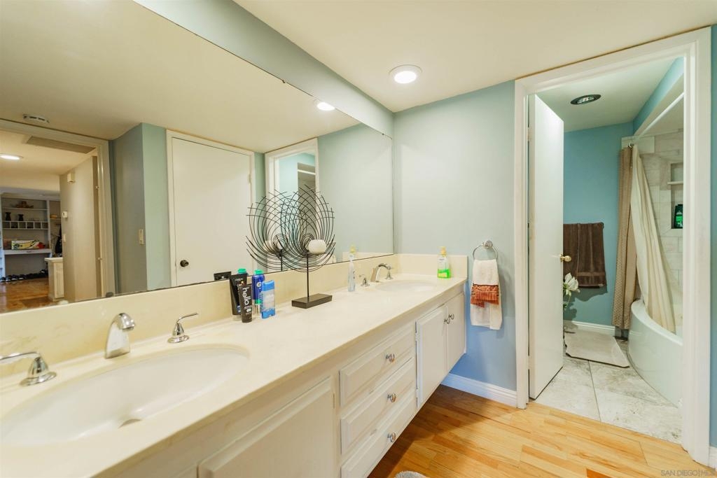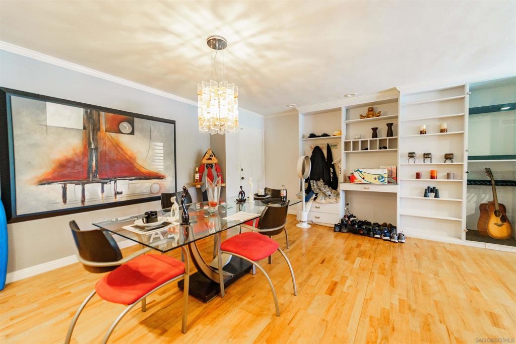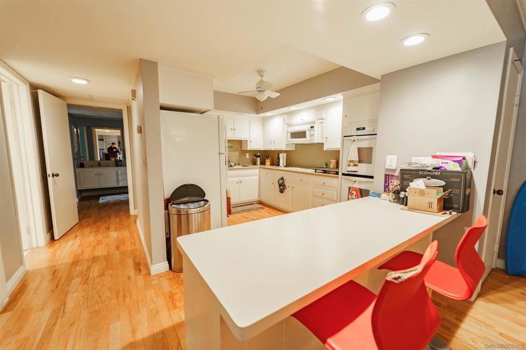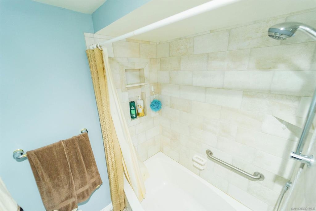 This unique first story condominium is located in the highly sought-after Rose Hedge Manor complex. With only 1 neighbor and located conveniently near the entry to the complex, the unit features a large, functional floorplan. The living room offers a built-in entertainment system with an abundance of shelving and storage. The living room connects to a private terrace, comes equipped with shades and an outdoor ceiling fan. The condo features wood floors throughout. dual master bedrooms, ample natural sunlight. central AC/ heating system recently installed. The location is highly desirable, the school systems are superior, and historic La Mesa Village is walking distance from the property!