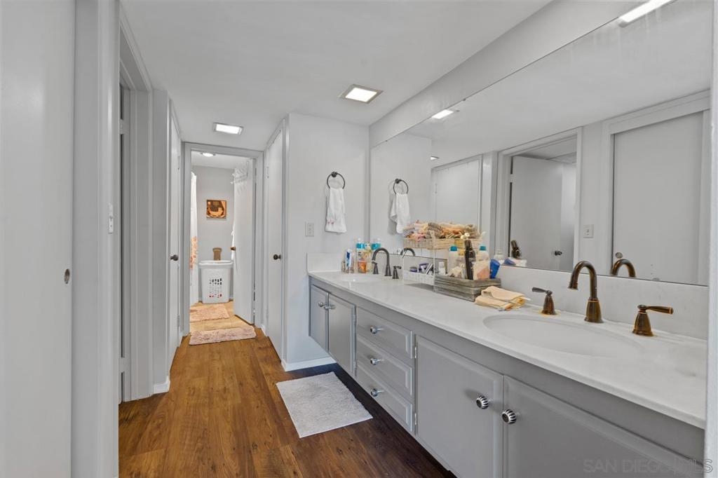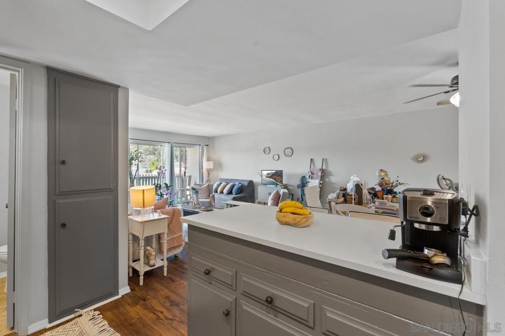 Walk to La Mesa Village from this Extra Large 912 sq.ft 1 bedroom 1 1/2 bath. Home features tons of natural light and open living area space. Updates include engineered hardwood flooring, new tub, bathroom sinks, kitchen countertops and AC unit. Primary bathroom is spacious with dual sinks and plenty of of counter space. Enjoy your am coffee on your patio balcony with views of Mt. Helix. Secured entry, gated parking and garage storage space. Enjoy the lovely roof top patio with friends or family. Rosehedge is a lovely place to call home.
