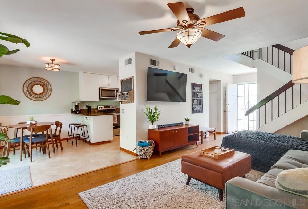Located just a short stroll away from Lake Murray, this beautifully updated townhome is the home you have been waiting for! Upgrades include gorgeous hardwood floors throughout main living spaces, neutral colored paint throughout & upgraded lighting. Kitchen has granite counter tops, white cabinets, stainless steel appliances, eat-at-bar & wainscoting in dining area. Double pained windows with plantation shutters throughout! Upstairs has a brand new, beautiful white bathroom vanity with black handles, black sink faucet, mirror & lighting. Huge master bedroom with vaulted ceilings & XL walk in closet! The large private patio is perfect for family gatherings & BBQs. Extra storage closet on patio. One car attached garage PLUS 1 assigned parking space. Full sized laundry inside garage. Community offers pool, spa, & playground. Close to shops, restaurants, schools & freeways! This townhome has it all! Complex Features: ,,, Sewer: Sewer Connected Topography: LL