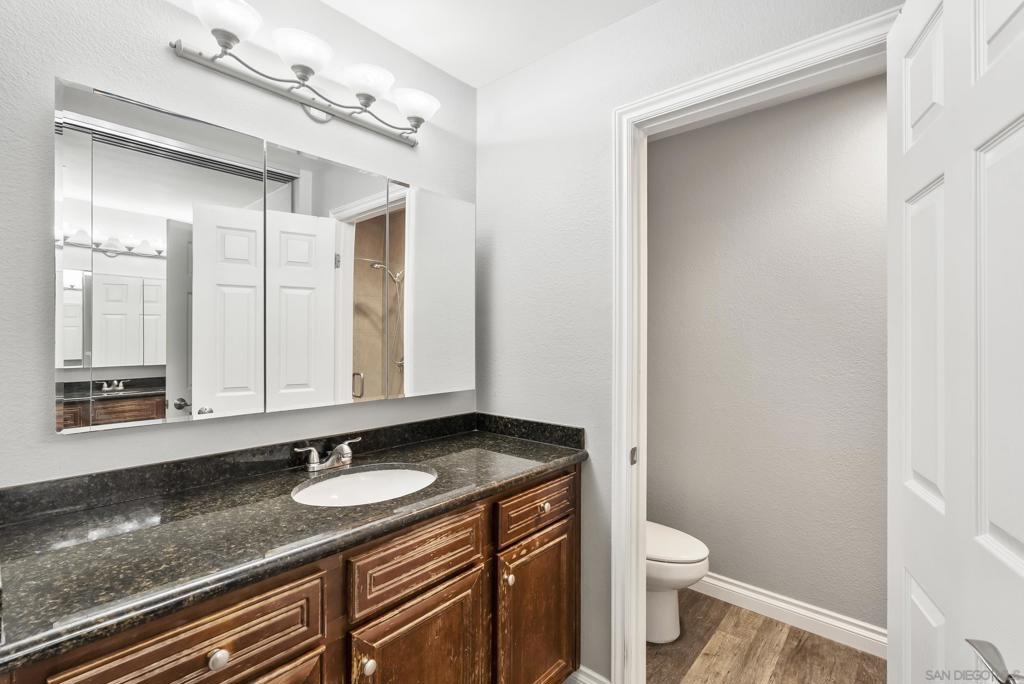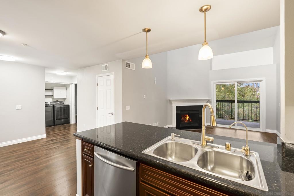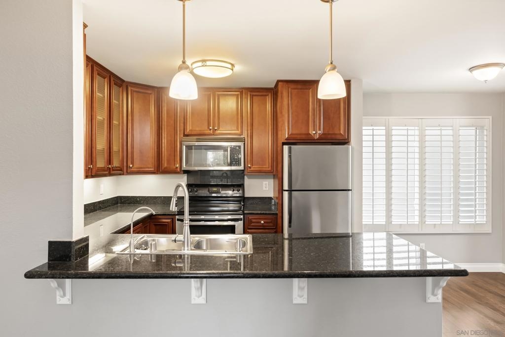 Welcome to Shasta Greens—a hidden gem in the heart of La Mesa! This beautifully upgraded 2bed, 2bath top-floor condo is located in a gated community with elevator access. Step inside to vaulted ceilings, abundant natural light, and custom plantation shutters that create a bright, inviting atmosphere. The living room features a cozy wood-burning fireplace, rich wood flooring throughout, and a private balcony offering serene views. The kitchen shines with new cabinetry featuring elegant glass doors, stainless steel appliances, sleek granite countertops, and modern updated lighting that elevates the entire space. Community amenities include a pool and spa, BBQ area, newly updated gym, gated entry, secured underground parking, and private storage units. Don’t miss your opportunity to own this beautifully upgraded condo in one of La Mesa’s most desirable communities!