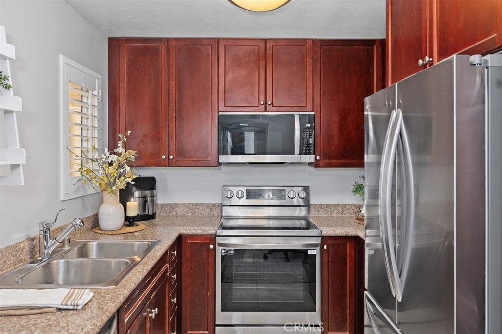 Location truly shines in the highly desirable Central Park Community in La Mesa, where location definitely is everything. Imagine living just a short stroll from the trolley, minutes from San Diego State University and Grossmont College, and close to parks, hospitals, shopping, and dining. With quick freeway access, your daily commute becomes a breeze. Step inside and feel instantly at home. This beautifully updated 1-bedroom, 1-bath condo is tucked inside the highly desirable Central Park community. The interior has been freshly painted and features large modern baseboards, floating shelves, a ceiling fan, and elegant plantation shutters that elevate the space. The stainless steel appliances and carpet are only a few years young, and the convenience of your own stackable washer and dryer makes everyday living effortless. Enjoy your morning coffee or unwind in the evening on your private balcony. The Central Park community offers resort-style amenities that make it easy to live your best life. Take advantage of the well-equipped gym, inviting clubhouse with a cozy fireplace, sparkling pool and spa, BBQ area, and plenty of shaded outdoor seating. Just beyond the pool, you’ll find beautiful green lawns, mature trees, and is dog-friendly. The lawn leads directly to a beautiful park—perfect for morning walks, weekend picnics, or simply relaxing with a good book. This condo, this community, and this location come together to create an incredible opportunity—whether you’re a first-time buyer, downsizing, or looking for a smart investment. Homes like this don’t come around often.
