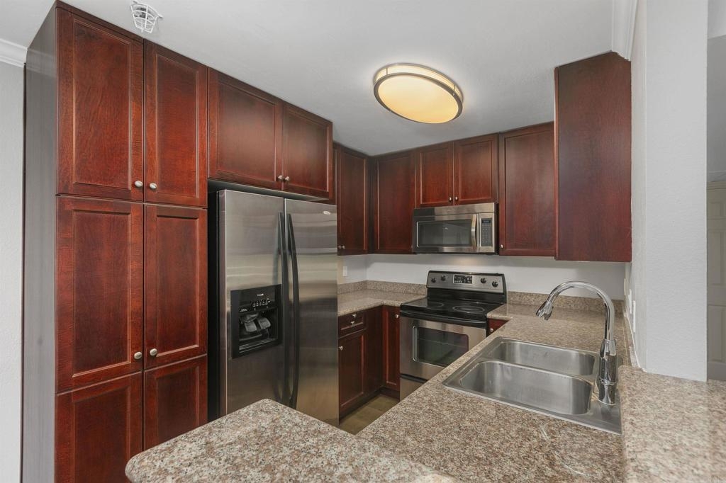 Welcome to this 691 sqft 1 story, 1 BR/1BA condo in the heart of La Mesa. Lots of space and many features! Granite counters in both the kitchen and bath with new laminate flooring. A stacked in unit laundry. Double pane windows, and a sliding door that lets in natural light. This lovely condo has a separate dining area and living room providing ample space for gatherings. The breakfast counter is perfect for a quick bite. There is an enclosed patio to enjoy morning coffee on and views of the surrounding greenbelt and trees. There is also extra storage in the patio. Resort style living awaits at Central Park La Mesa Community. Sparkling pool and spa. A well equipped gym for workout routines. The clubhouse offers a perfect spot to socialize with friends and neighbors. The greenbelt area offers plenty of room to have fun. This condo offers easy access to SDSU, UCSD, shopping and restaurants through MTS trolley system just across the street.