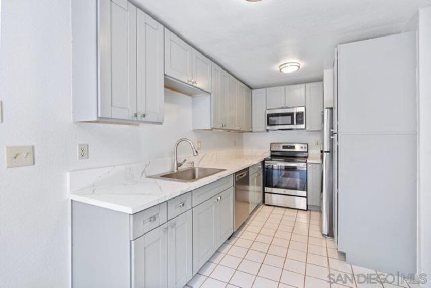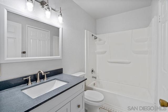 Beautifully remodeled two-bedroom, one and a half bath, offering exceptional privacy and a charming fenced-in outdoor patio. The brand-new kitchen boasts elegant cabinets, countertops, and stainless-steel appliances, while the recently renovated bathrooms feature contemporary vanities with sleek countertops. Enjoy the convenience of an upstairs in-unit laundry area equipped with a newer washer and dryer. The entire unit has been freshly painted, creating a clean and inviting atmosphere. Located just minutes from SDSU and a variety of shopping and dining options, and within walking distance to the Lake Murray.