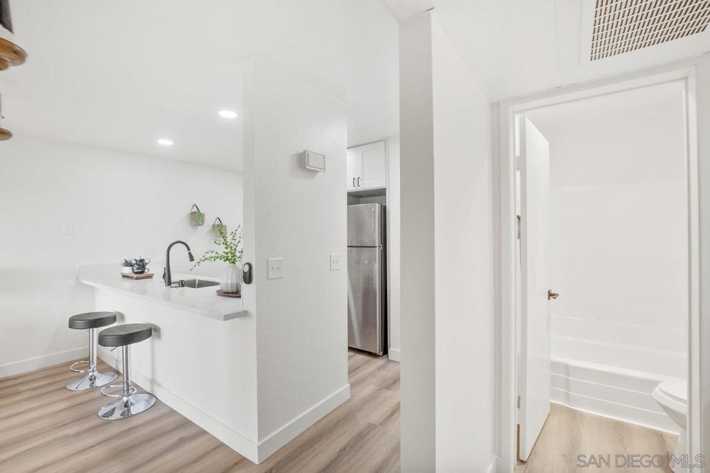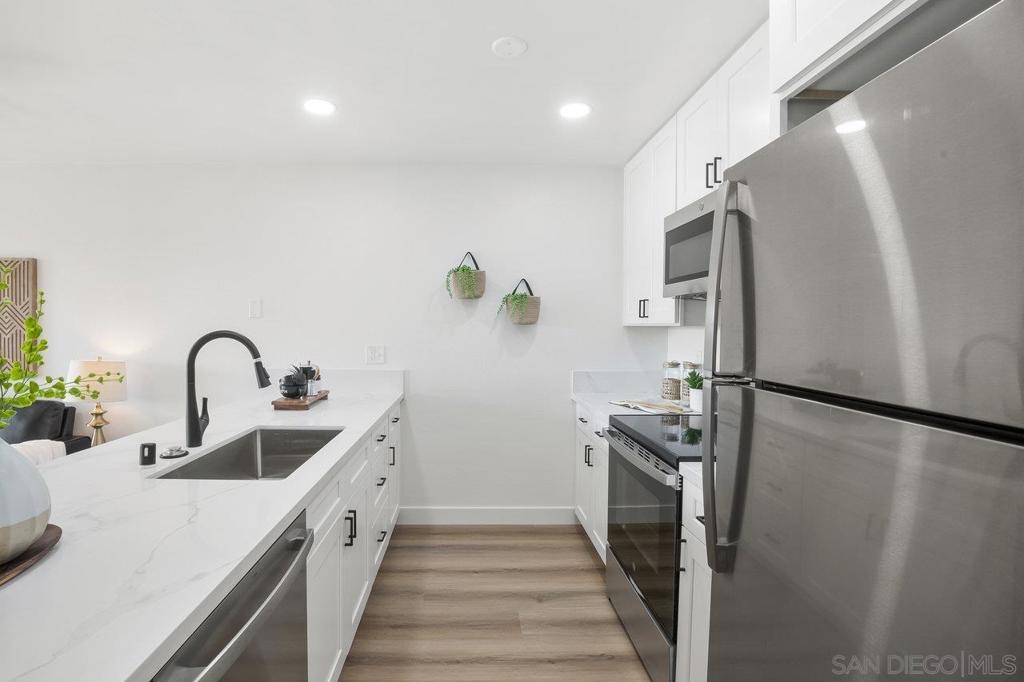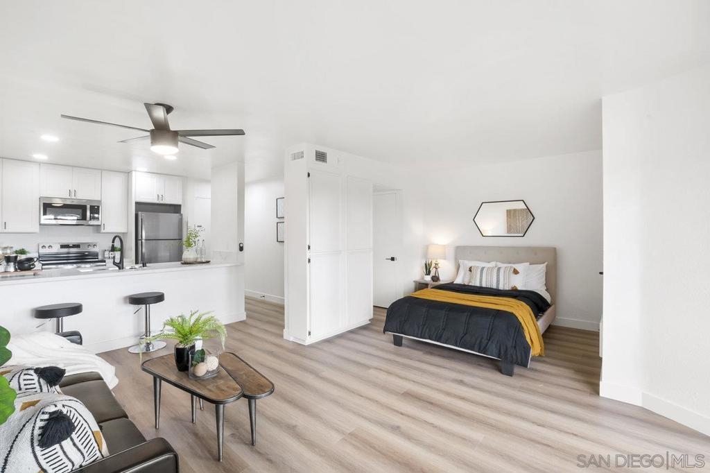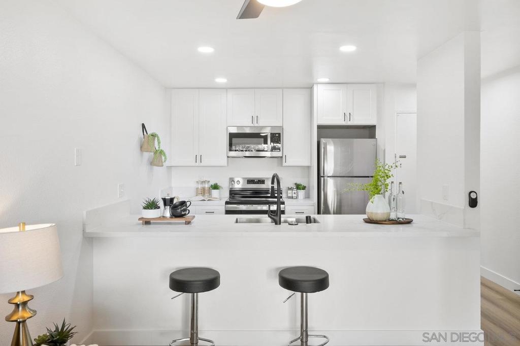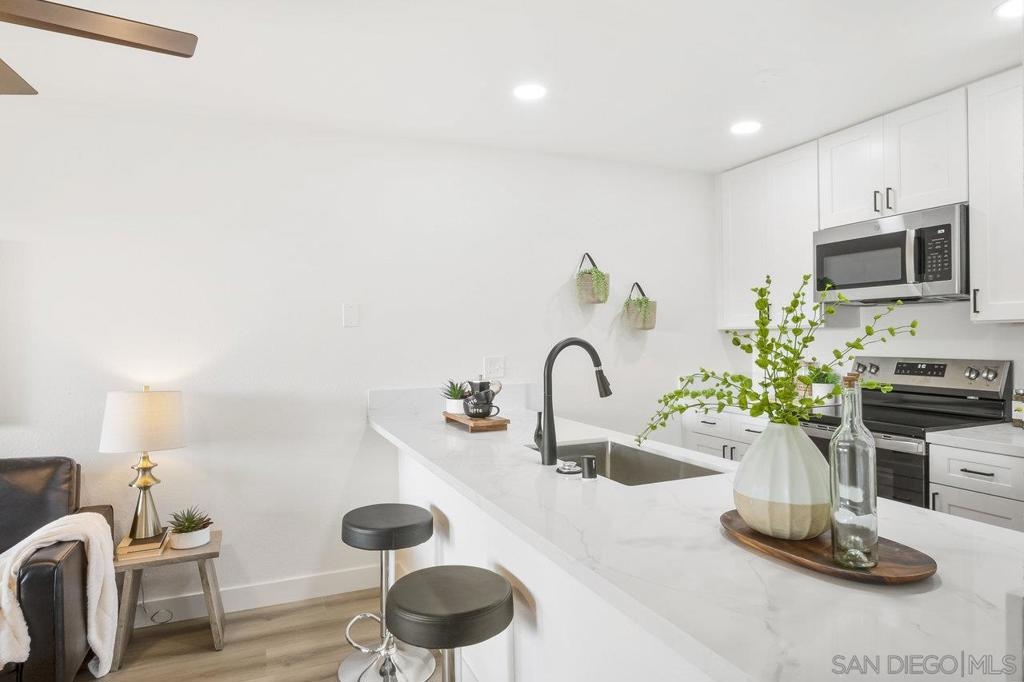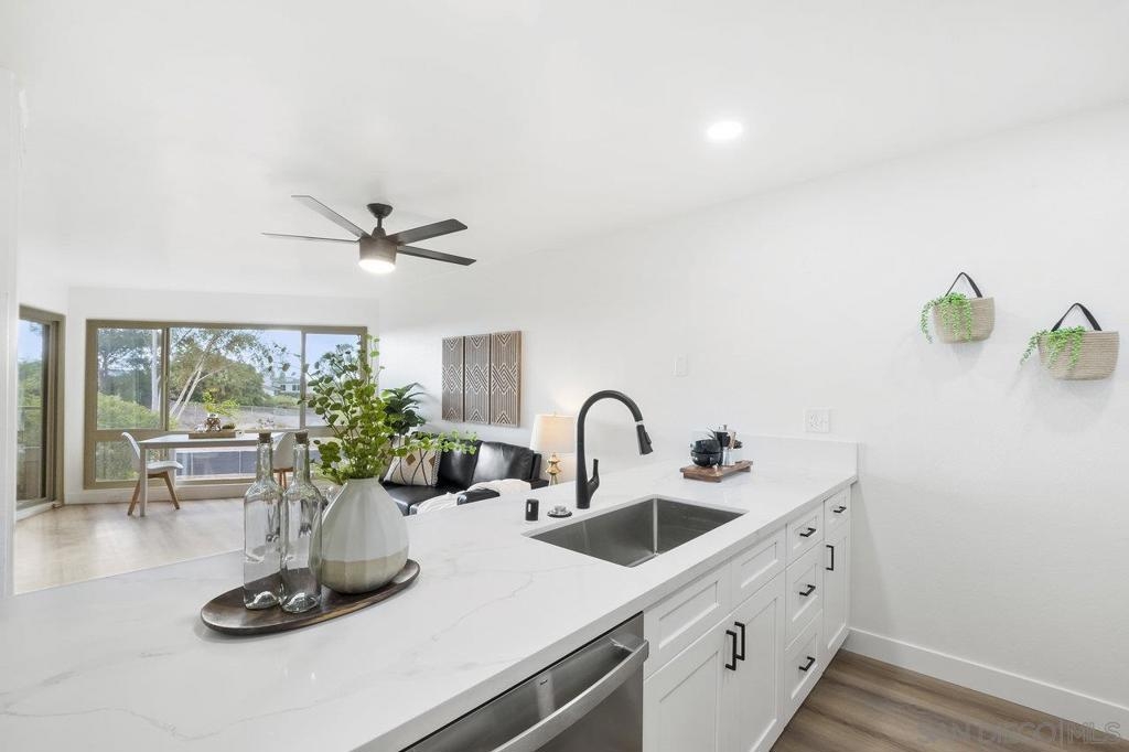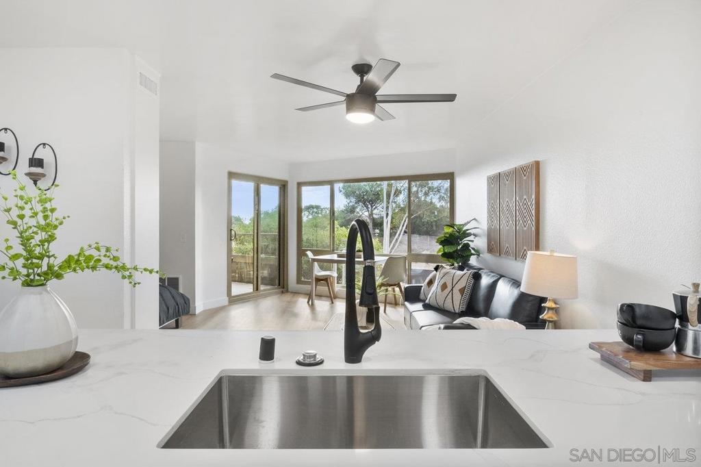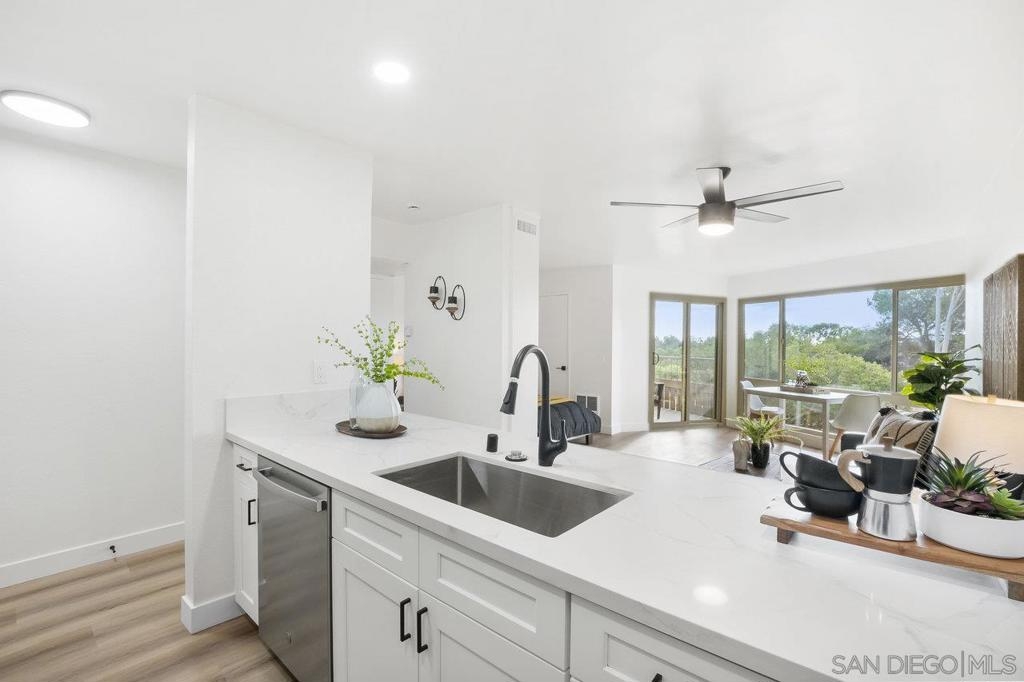 VIEWS, VIEWS, VIEWS! Welcome to this beautifully remodeled 2nd-floor Studio Condo with beautiful views of Lake Murray and Cowles Mountain! The kitchen features shaker soft close cabinets, stainless steel appliances, and gorgeous quartz countertops. Newly installed vinyl plank floor and windows. The open-concept design creates a flexible living area you can customize to your needs. Delight in the abundant natural light streaming through the new windows and relax on the patio enjoy the beautiful views while sipping on a cup of coffee. Enjoy low HOA that include wonderful amenities, including 5 pools, 4 spas, gym, sauna, pool table, hiking trails, car wash area, tennis & pickle ball courts and a large recreation room with kitchen. Centrally located, Lake Murray, close to shopping, Starbucks, dining, freeway access, schools, and public transportation.