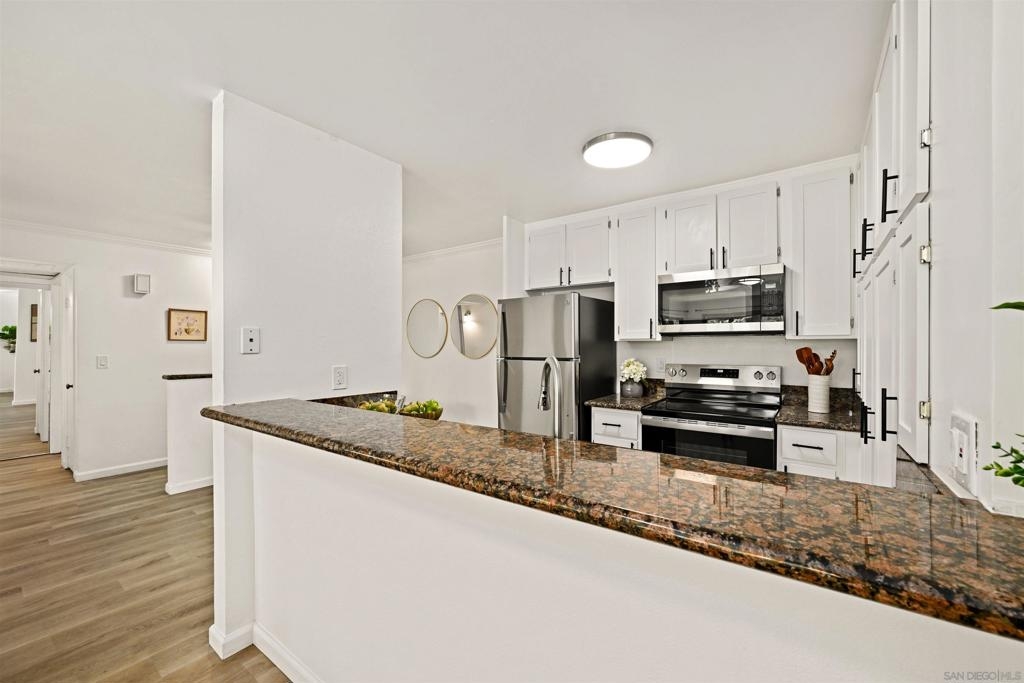 Live Moments from Lake Murray in Style! Experience the best of resort-style living in this beautifully updated, first-floor corner unit just moments from Lake Murray. This light-filled home features gorgeous laminate flooring throughout, an updated kitchen with newer cabinetry and new stainless steel appliances and a private patio perfect for relaxing or entertaining. Enjoy the comfort and convenience of a spacious layout designed to let the outdoors in. Relax and unwind in your private patio while enjoying the idyllic weather all year long. You are only feet from Lake Murray Trail providing miles of trails to explore. This property is across from the community pool, there are 5! Lake Murray Trails too! The Lake Park Community offers a wealth of amenities including five sparkling pools, four spas, tennis and pickleball courts, scenic hiking trails, a fitness center, saunas, and a welcoming clubhouse. Ideally located within easy distance to shopping and dining, and just a short drive to Mission Trails Park. VA approved and ready for you to move in—don’t miss this opportunity to live where every day feels like a vacation!
