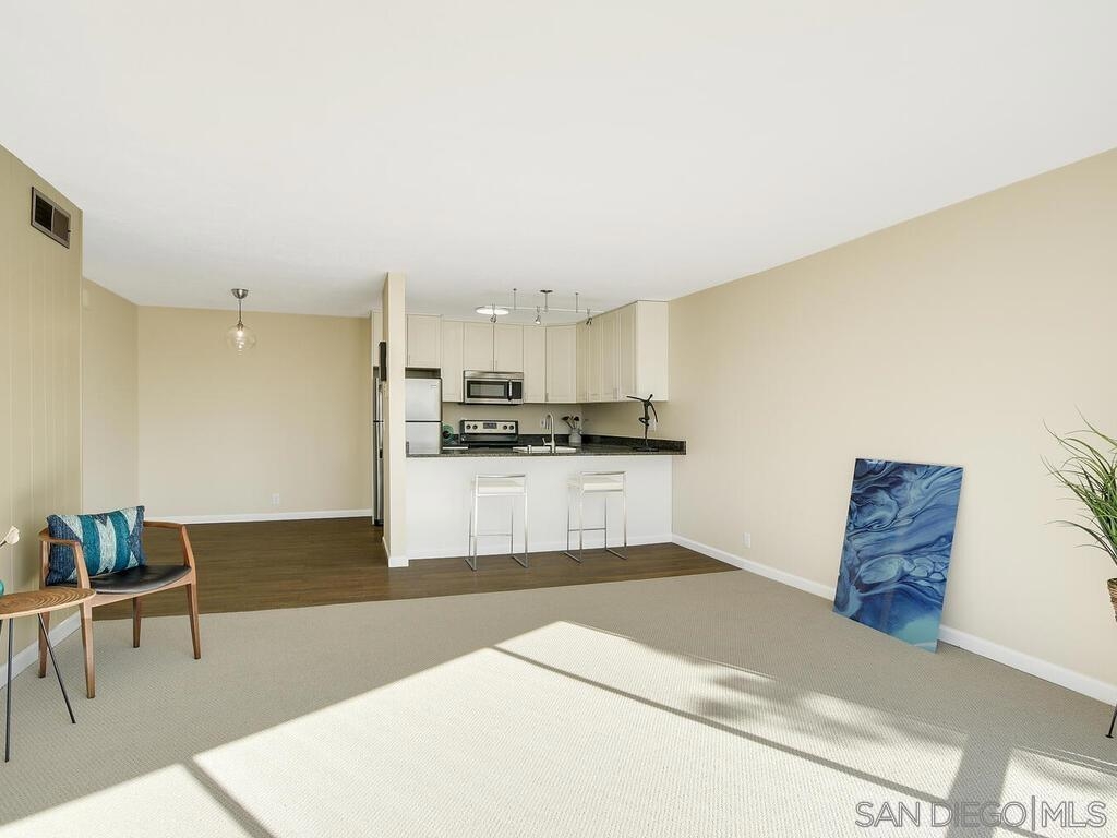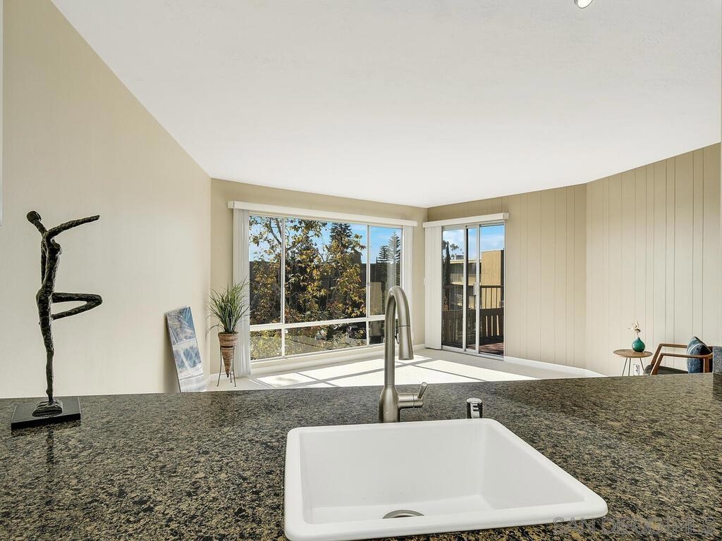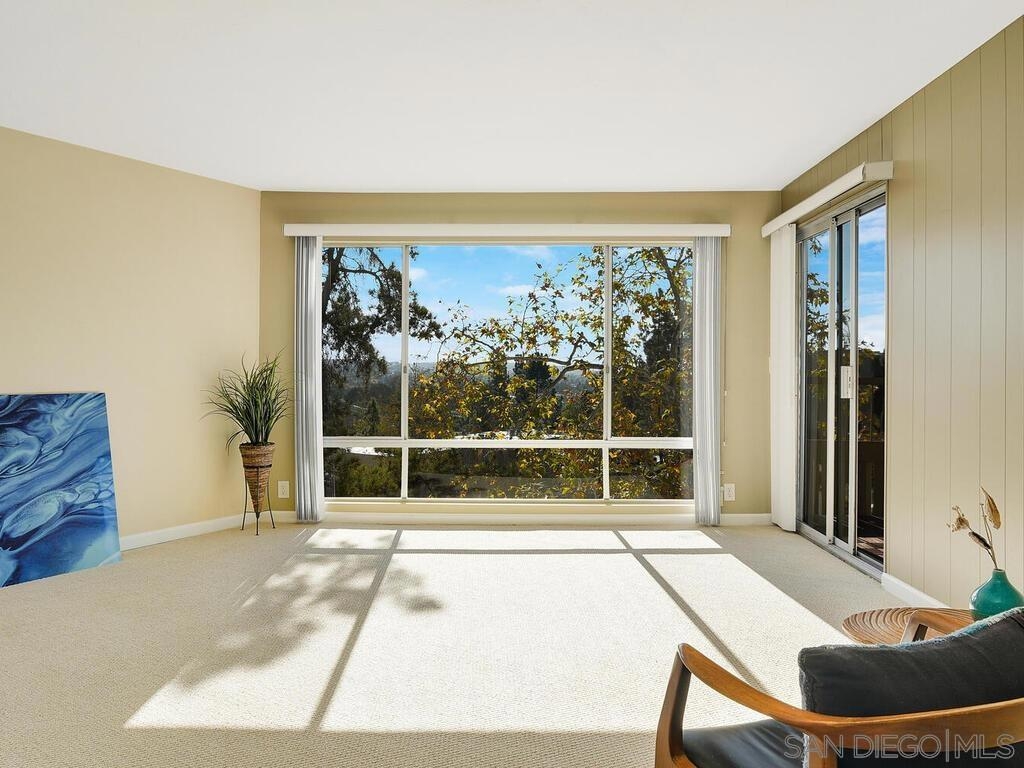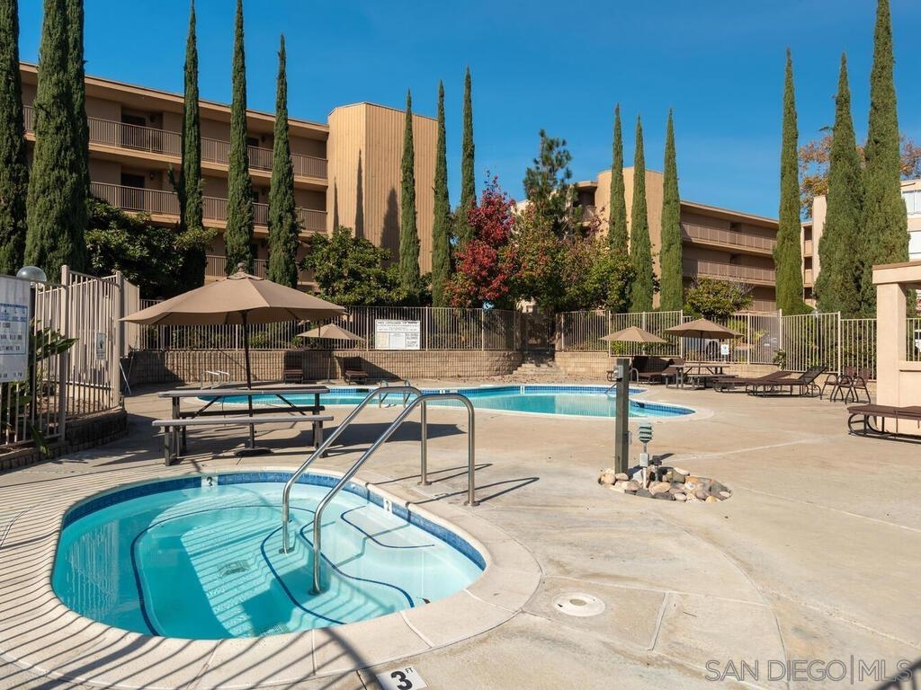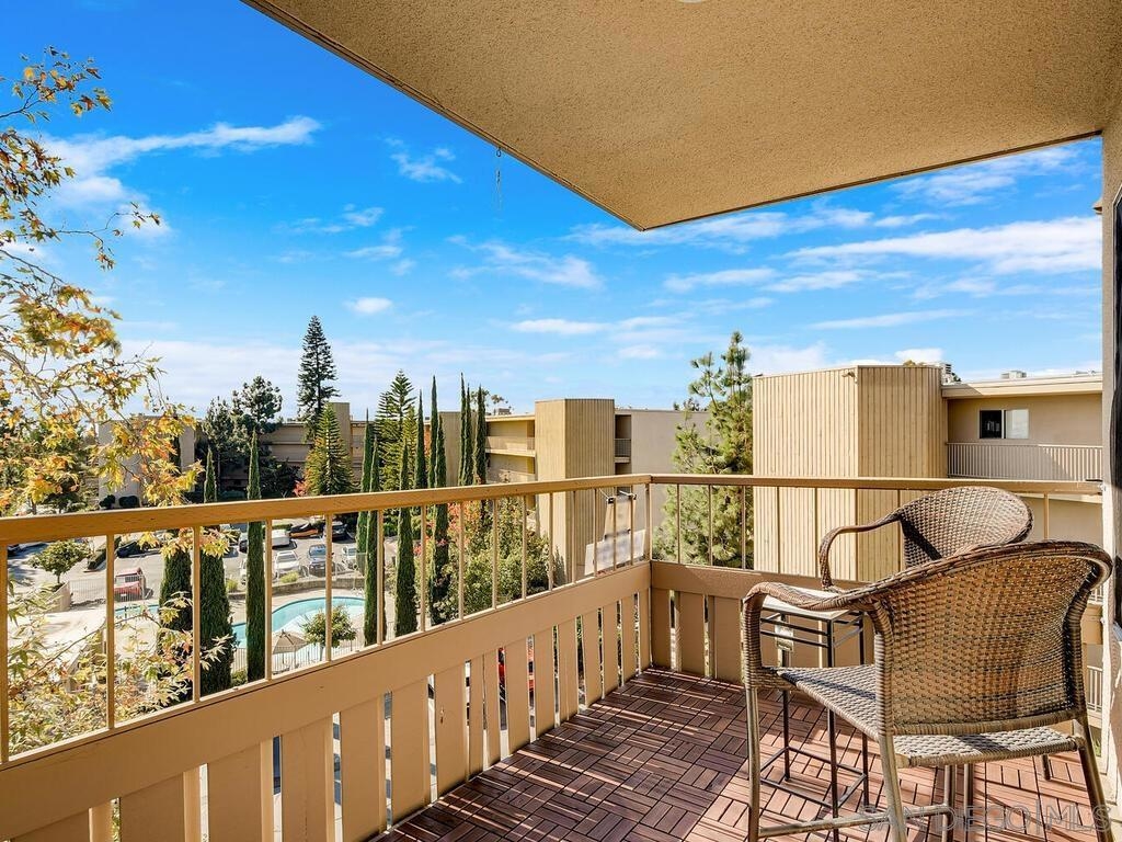 Light & bright gorgeous corner, penthouse unit with excellent mountain and evening light views. Unit has brand new carpet and paint in warm tones, luxury vinyl plank flooring, breakfast bar, newer heating & air (2023), mirrored wardrobe doors, remodeled kitchen (2014) and recently updated bath. Great condo project with extensive amenities and beautiful grounds. Complex is directly adjacent to Lake Murray with walking/bike trails, lake, fishing, etc. Complex offers 5 pools, 4 spas, gym, rec room, RV parking, tennis, pickleball and clubhouse. Common laundry facilities are located on each floor level. Two pets allowed with 30 lb weight restrictions although service animals are exempt. Unit includes one designated parking space #594. Additional parking may be available for lease from HOA.