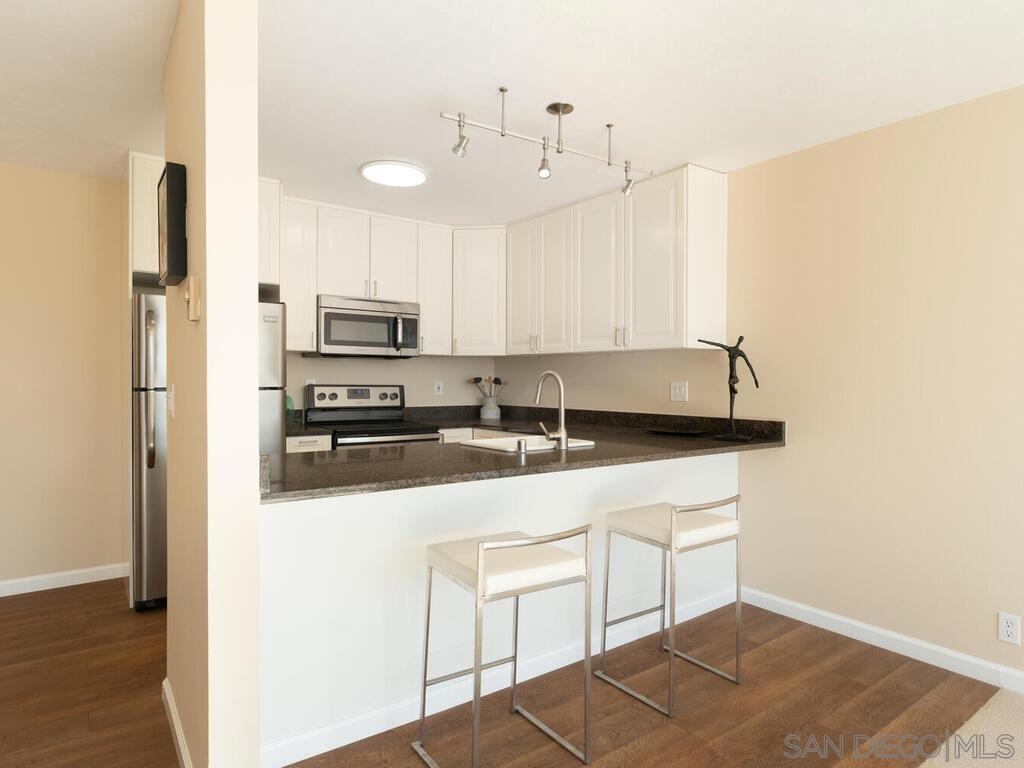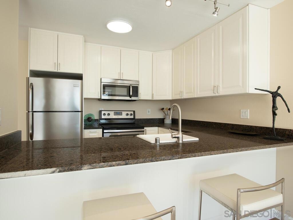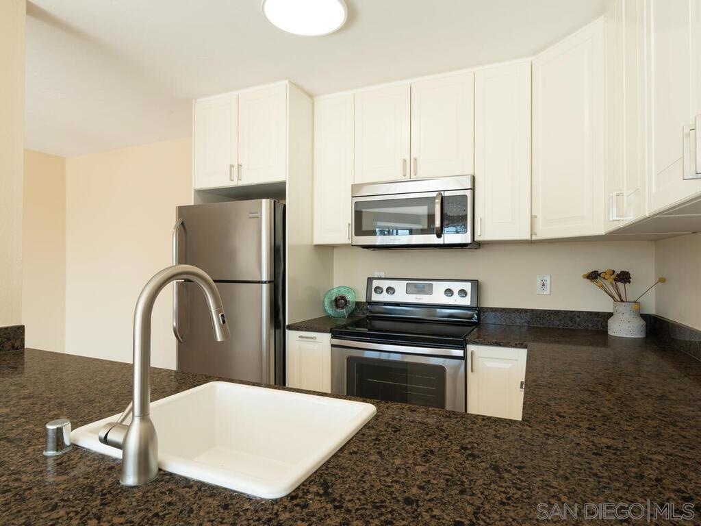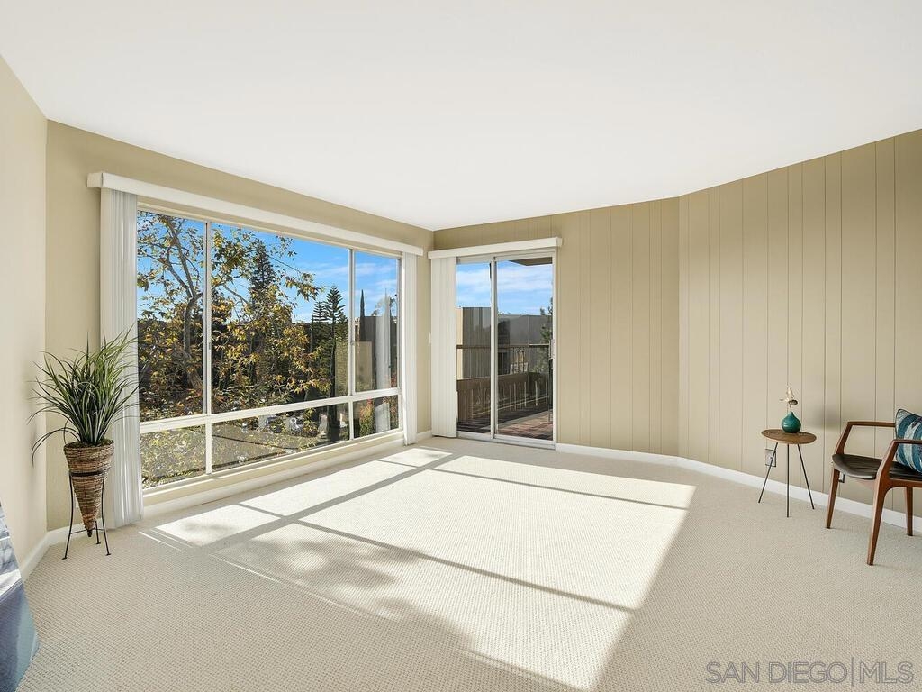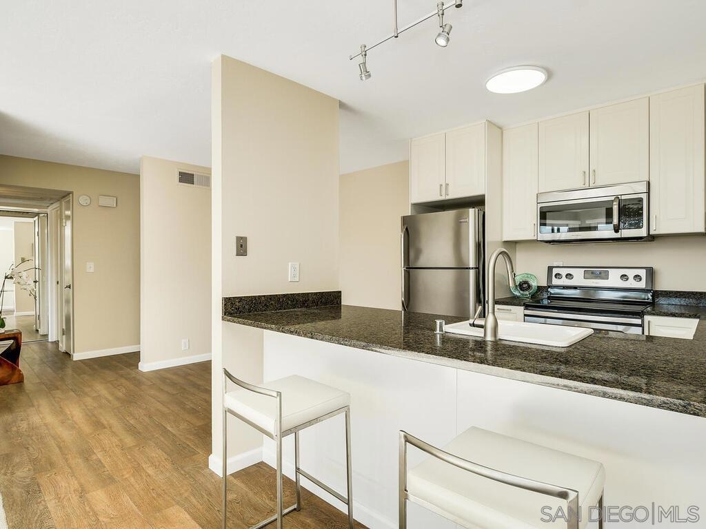 Light & bright gorgeous corner, penthouse unit with excellent mountain and evening light views. Unit has brand new carpet and paint in warm tones, luxury vinyl plank flooring, breakfast bar, newer heating & air (2023), mirrored wardrobe doors, remodeled kitchen (2014) and recently updated bath. Great condo project with extensive amenities and beautiful grounds. Complex is directly adjacent to Lake Murray with walking/bike trails, lake, fishing, etc. Complex offers 5 pools, 4 spas, gym, rec room, RV parking, tennis, pickleball and clubhouse. Common laundry facilities are located on each floor level. Two pets allowed with 30 lb weight restrictions although service animals are exempt. Unit includes one designated parking space #594. Additional parking may be available for lease from HOA.