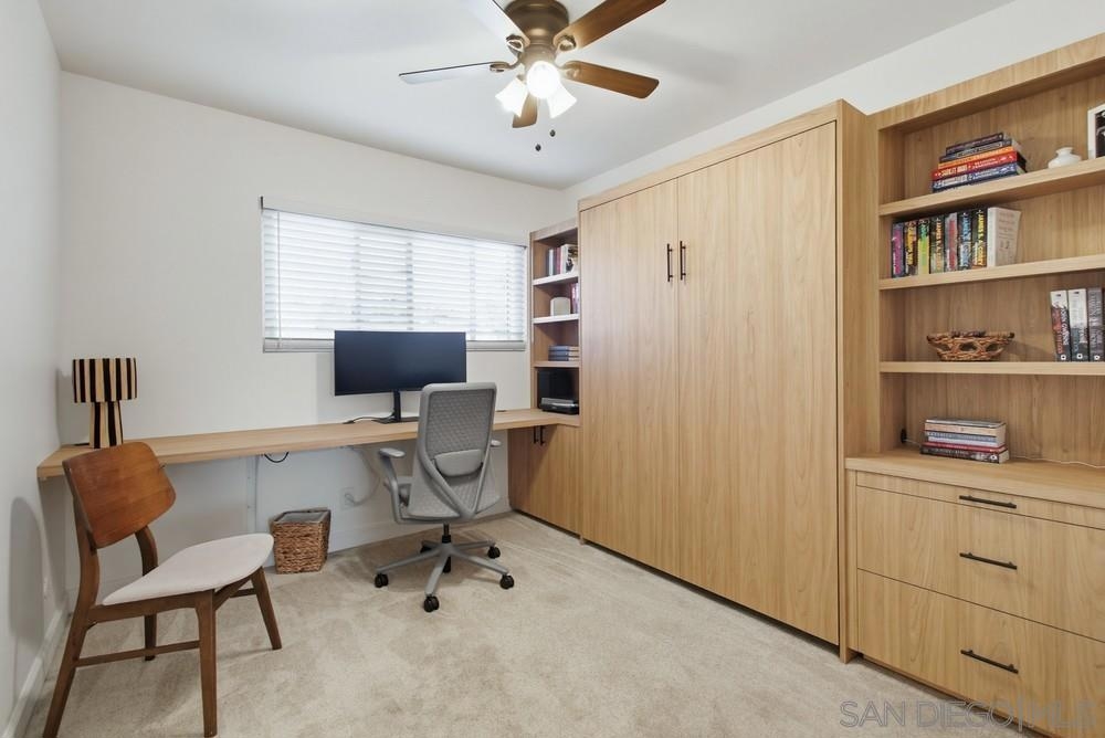 Beautifully upgraded 3-bedroom, 2 bath, two-story townhome in the desirable Lake Murray community of La Mesa. This move-in ready home is exceptionally clean and features spacious rooms, modern finishes, and abundant natural light throughout. The third bedroom includes a high-end custom built-in Murphy bed with desk, ideal for a home office or guest space. Enjoy a charming private backyard perfect for relaxing or entertaining. Parking includes a single-car garage plus an additional deeded parking space conveniently located next to it. Community amenities offer a park-like setting with pool, tennis courts, and a children’s playground.