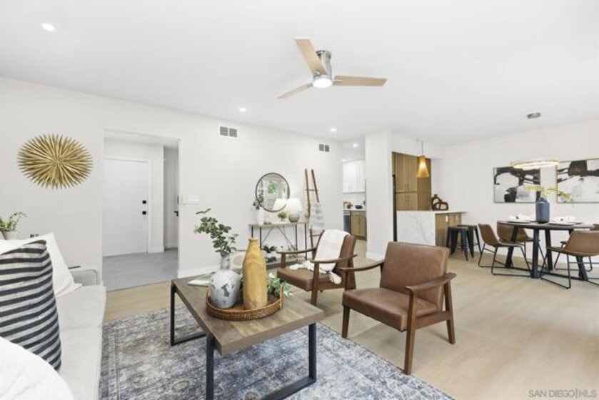 Not every remodel is created equal. This one was done right. Welcome to 5931 Howell Drive #14 — a completely transformed 3-bedroom, 2.5-bath townhome in the heart of Grossmont Village, one of La Mesa's most sought-after communities. At 1,444 square feet, it's spacious where it counts, and upgraded where buyers care most. The kitchen is all new — white shaker cabinets, quartz countertops, stainless appliances, and a layout that opens naturally into the dining and living areas. The main level features fresh luxury vinyl plank flooring, recessed lighting, and a 210-square-foot private patio that extends your living space outdoors. Upstairs, the primary suite is anchored by an oversized skylight and a beautifully finished en-suite bath. The secondary bedrooms carry genuine character — exposed beams, original brick — and the kind of warmth that a fresh coat of paint alone can't manufacture. What truly distinguishes this unit in Grossmont Village is the in-unit laundry. Full-size washer and dryer, inside your home. In a complex where most residents walk to shared facilities, this is a meaningful upgrade to daily life — and one of the first things buyers notice when they see how rare it is here. One covered carport with storage, community pools, and an HOA that covers water, sewer, hot water, trash, landscaping, and exterior maintenance round out a package that's genuinely hard to replicate at this price point. VA and FHA approved. A 4-minute walk to Northmont Park. Easy access to the trolley, I-8, Lake Murray, and SDSU. The seller is motivated and the price reflects it.