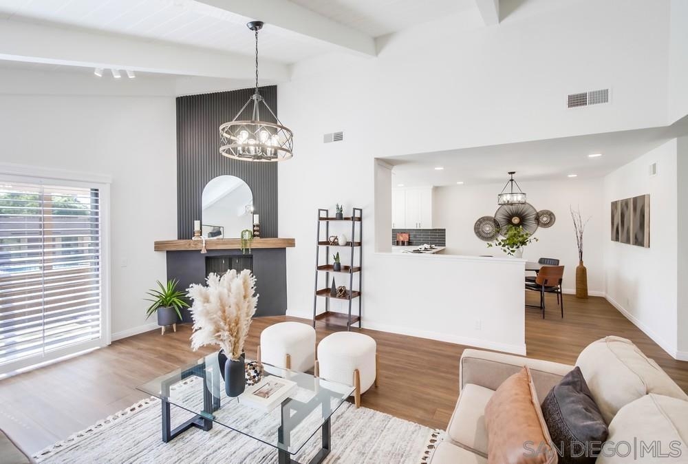 Introducing this gorgeous, one-level designer dream home! This beautifully renovated home boasts a brand-new kitchen, featuring modern finishes and sleek design, perfect for cooking and entertaining. The chic fireplace creates a cozy ambiance, while the stunning flooring adds warmth and style throughout. The huge primary suite offers a peaceful retreat with a spacious walk-in closet, and the 2-car garage adds convenience and a plethora of storage. Enjoy terrific views from the fabulous patio, ideal for relaxation or outdoor gatherings!