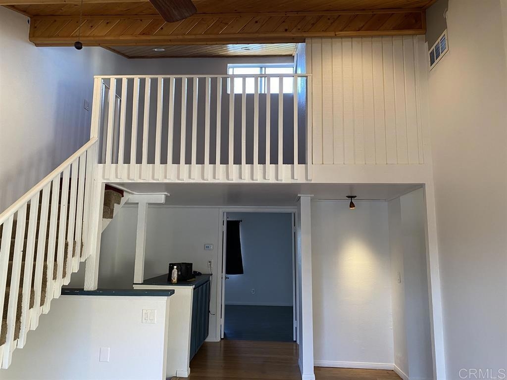 Welcome to this stunning end-unit townhouse in the highly sought-after La Mesa Racquet and Swim Club. The first floor offers an attached two-car garage with direct access to the condo, along with a convenient entrance. On the second level, you'll find the main living space, featuring a modern kitchen with granite countertops and a custom Spanish tile backsplash, two bedrooms with laminate flooring, and a spacious living and dining area with elegant bamboo flooring. The top floor provides an additional bedroom and a versatile loft area, perfect for an office or extra living space (permits unknown). Two sliding doors lead to a private back patio, ideal for relaxation or entertaining. The townhouse includes three parking spaces: a two-car garage and an additional parking permit. Community amenities include a large swimming pool, hot tub, and tennis courts. This home is conveniently located near shops, restaurants, and the 8 freeway, within one mile of SDSU!! As an end unit with only one shared wall, it offers extra privacy. The current tenant is interested in remaining.