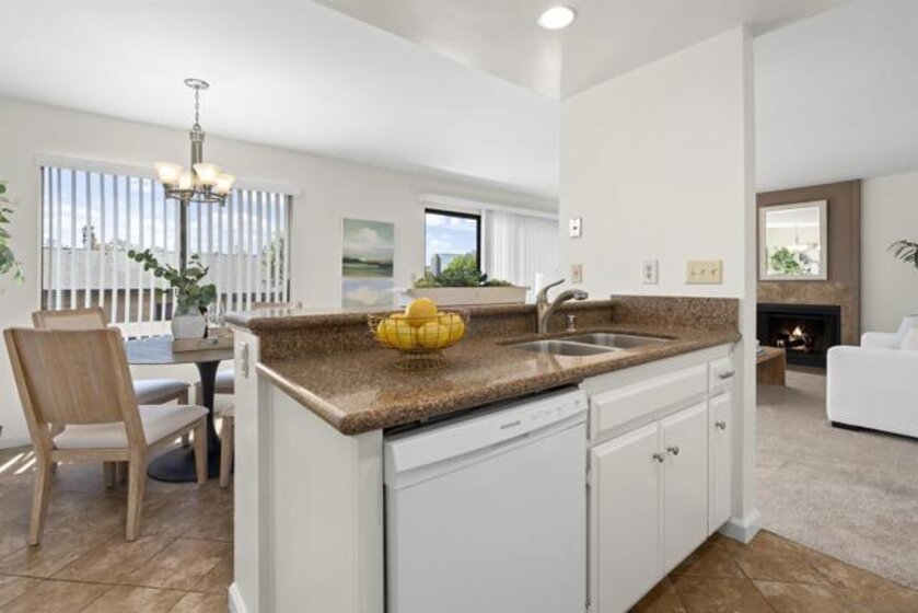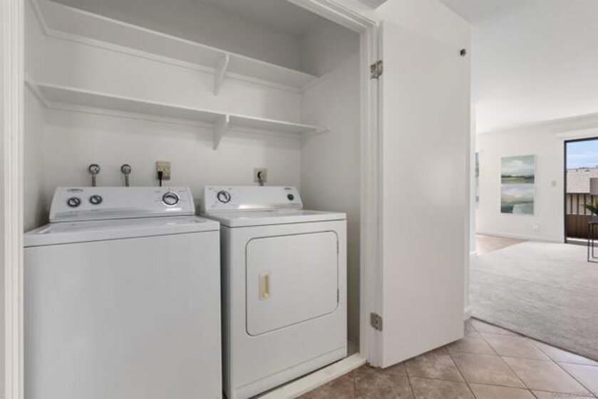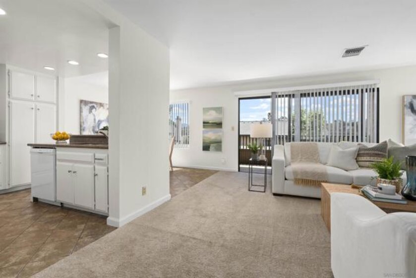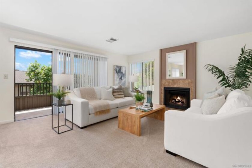 This spacious La Mesa condo boasts so many hard to find features: Great square footage, 3 bedrooms w/ 2 full baths, tons of storage, IN UNIT laundry & a 1 car garage w/ an additional space! The kitchen features an open concept w/ a breakfast bar, granite counter tops & recessed lighting. Enjoy cool breezes on the balcony or cuddle around the fireplace on those cold winter nights. Among the many upgrades are forced air heating & central AC, upscale lighting fixtures, fresh paint & new carpet. Please see the supplement for more. Welcome home! The complex is conveniently located near great shopping, eating and SDSU. It features a wonderful pool area as well!