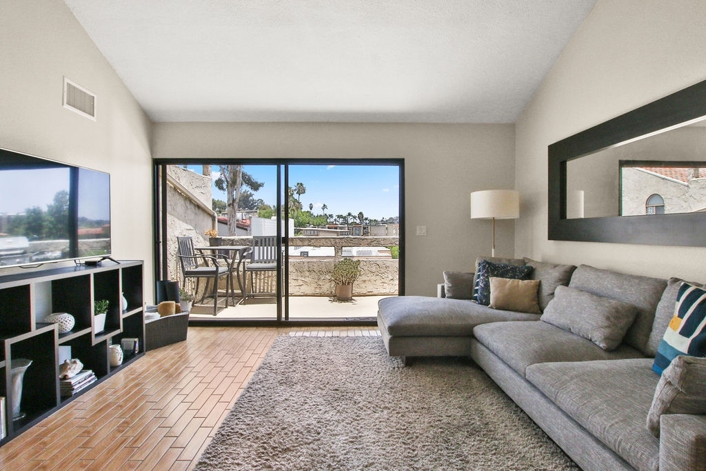 Bright & Airy La Mesa Village Townhouse! No one above or below you. Upstairs has been totally opened up for great flow from the kitchen through living room out to your enclosed patio with views of The Village and Mt. Helix. Living area has pristine Italian Porcelain tile and automatic sun shade to keep you cool. Remodeled kitchen with white Shaker cabinets and stainless steel appliances. New high efficiency Trane AC & Heat with built in Nest system. New stacked in-unit laundry. Best unit in the complex!. Neighborhoods: La Mesa Village Complex Features: ,,, Equipment: Dryer, Range/Oven, Washer Other Fees: 0 Sewer: Sewer Connected Topography: GSL