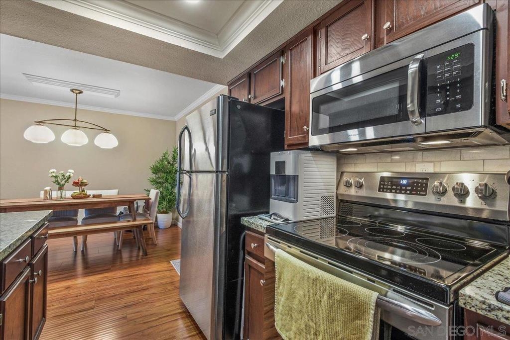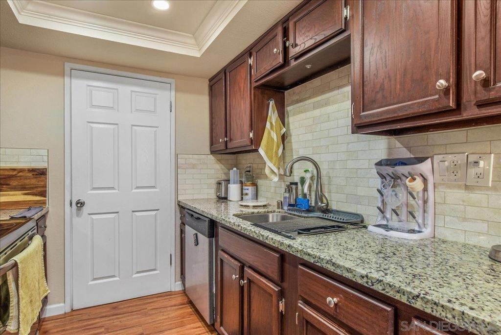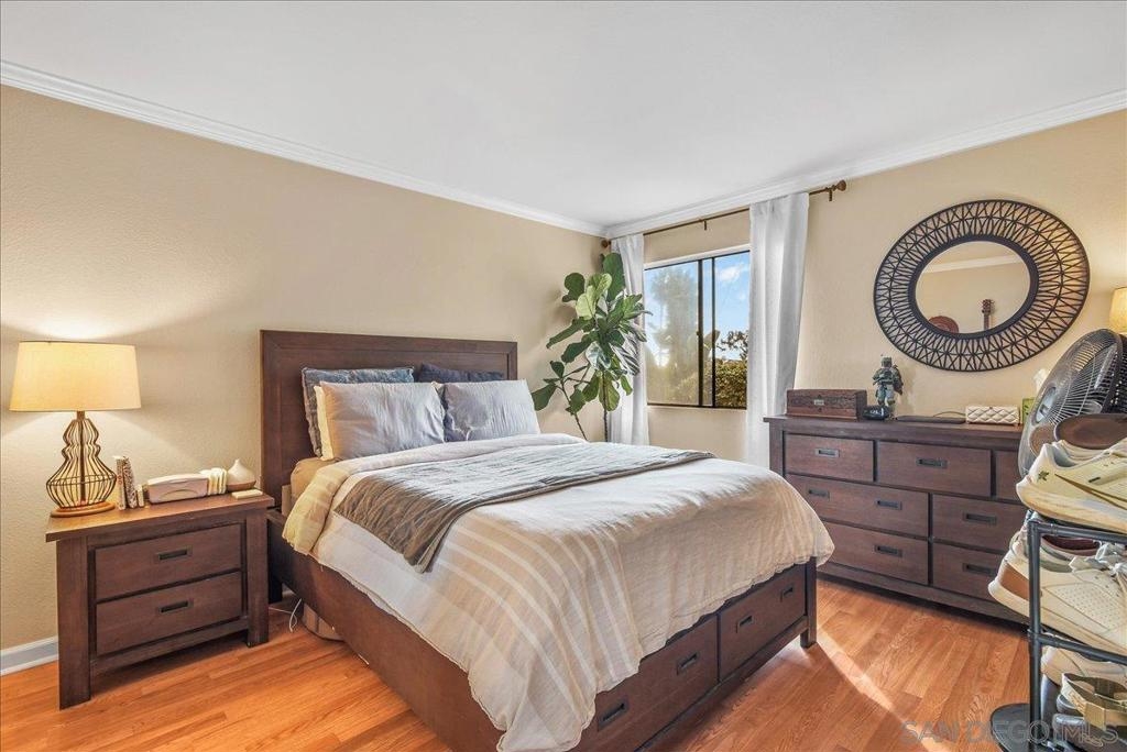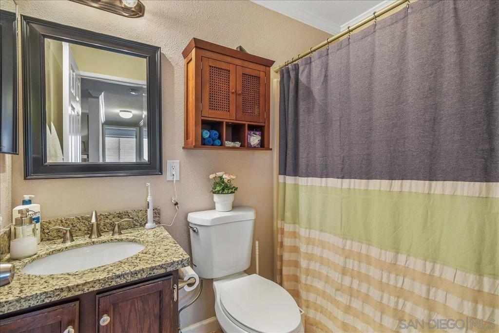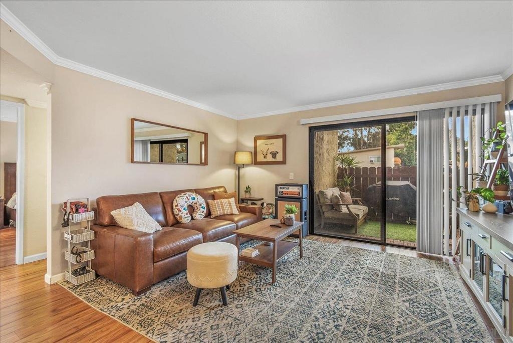 La Mesa turnkey gem! Light and Bright 2 bedroom, 2 full bath has an exceptional floor-plan. Open modern combo living room and dining area with tons of natural light. Many upgrades including crown molding throughout, central air conditioning and heat. Kitchen features beautiful countertops with top to bottom back-splash, walk in pantry that doubles as a clever Washer/Dryer closet and stainless steel appliances. Spacious master bedroom with walk in closet. Extra additional exterior storage. Revamped nice size patio with upgraded tiles is perfect for a BB-Q or just to relax and enjoy some me time. Centrally located across the street from shops, coffee house, grocery store and more. Close to freeways and minutes away from exciting downtown La Mesa.