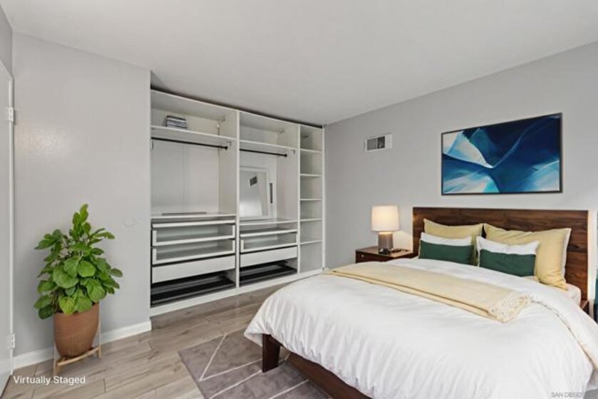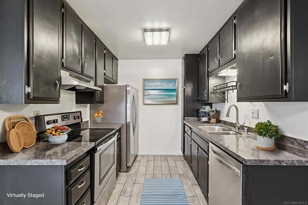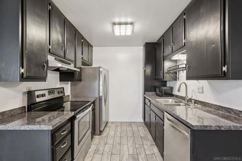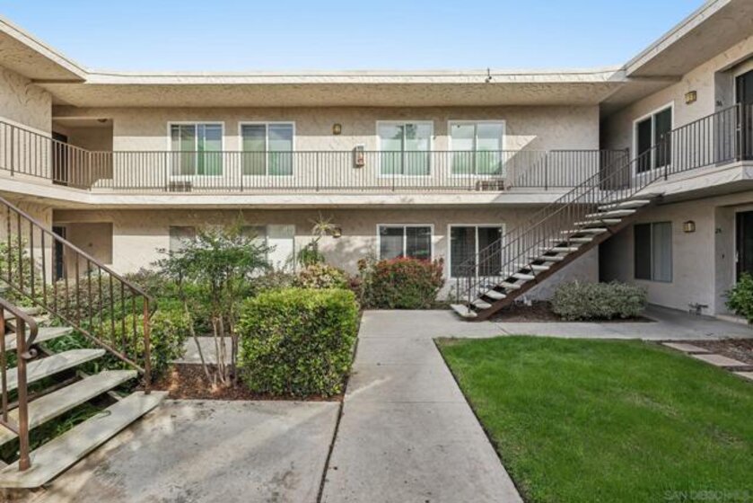 PRIME LA MESA LOCATION * CHARMING 1 BEDROOM/1BATH CONDO * CARPORT PARKING SPACE W/STORAGE * GATED COMMUNITY * BEST PRICED CONDO IN LA MESA! Prime La Mesa location in a gated community, this charming 1-bedroom, 1-bath condo offers comfort and convenience. Tucked at the end of a quiet cul-de-sac on a hillside setting, this move-in ready ground-floor home enjoys a peaceful courtyard view and a bright, welcoming interior filled with natural light. Inside, you’ll find an updated kitchen featuring granite countertops, Whirlpool appliances, and wood-grain porcelain tile flooring. Light grey laminate flooring flows through the living, dining, and hallway areas for a clean, giving a contemporary feel. Energy-efficient windows and wall A/C add everyday comfort. The spacious bedroom includes a large closet with custom wardrobe shelving, and the smart layout makes the home feel open and functional. Your front door is conveniently located near your covered carport space with overhead storage. The well-maintained community features lush landscaping, a sparkling pool, spa, BBQ area, and community laundry facilities. Water is included in the HOA fees! Location is everything, and this one delivers. Just minutes from Grossmont Center, Costco, hospitals, public transit, SDSU, Grossmont College, Cuyamaca College, Lake Murray, Mission Trails, and Cowles Mountain, you’ll have shopping, dining, recreation, and freeway access right at your fingertips. Whether you're a first-time buyer, downsizing, or looking for a smart investment, this is an incredible opportunity to own in the heart of La Mesa. Why rent when you can own?