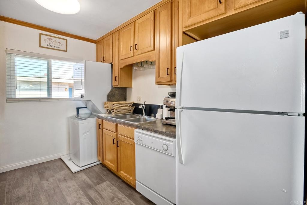 You are home! This upgraded two bedroom, two full bathroom 2nd floor unit located in the gated community of Villa Del Sur features a washer/dryer combo included, along with new windows and upgraded flooring throughout. Included is 1 Covered assigned parking space with storage closet. The complex offers many amenities: pool, sauna, BBQ and much more!