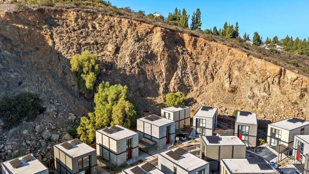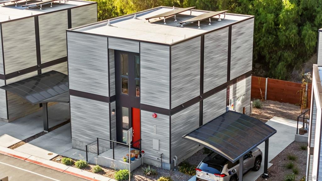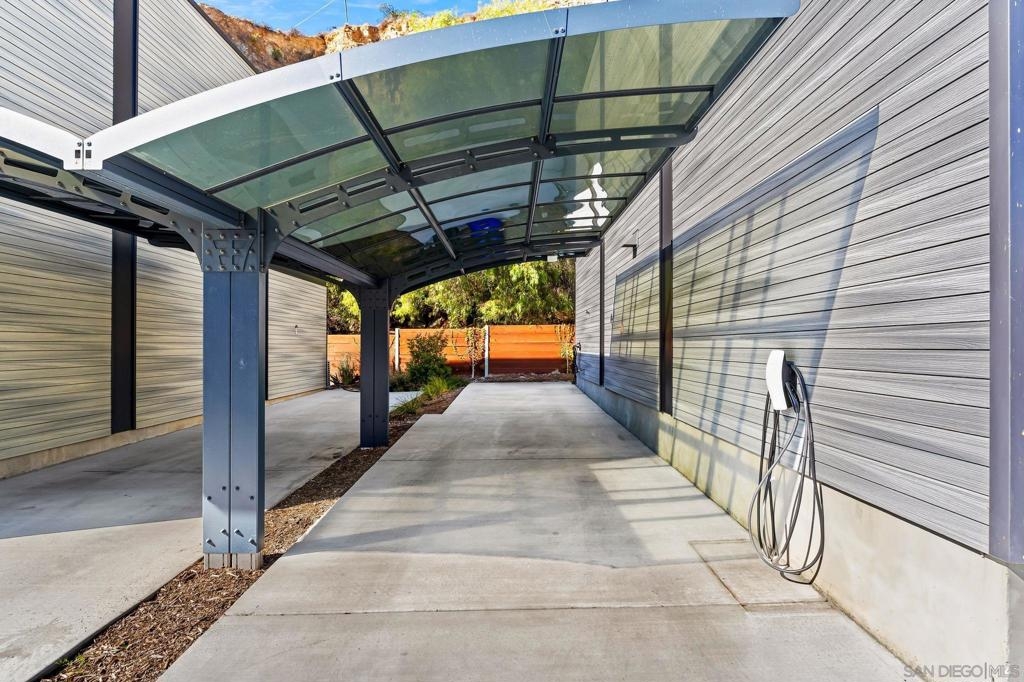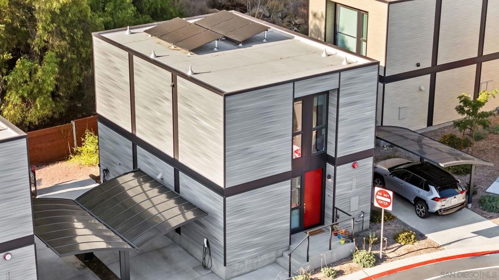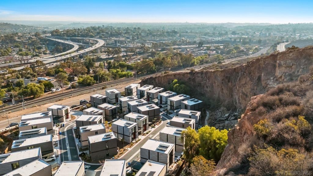 Cantera is one of La Mesa’s coolest hillside enclaves with one way in and out for privacy and just minutes from downtown! Built in 2024 this La Mesa premier detached upgraded home features soaring ceilings, LED lighting, and panoramic dual-pane windows in an open-concept layout. The gourmet kitchen boasts GE Café appliances, quartz countertops, custom cabinetry, and premium fixtures. This open floor plan is perfect for every day living and for entertaining. Owners have added custom built-ins, smart home tech, and designer finishes for a truly refined space. Eco-friendly amenities include fully-owned solar panels, a Tesla EV charger, tankless water heater, upgraded Samsung single unit washer/dryer and energy-efficient HVAC. Enjoy private outdoor living with a covered carport, scenic patio, and custom landscaping in a low-density, HOA-maintained community. Walk to La Mesa Village, Collier Park, and Spring Street Trolley—plus quick freeway access. Upstairs, you'll find spacious bedrooms with upgraded storage and a modern bath featuring luxury tile and sleek fixtures. Discover Cantera—upgraded luxury, green living, and hillside charm, move-in ready!