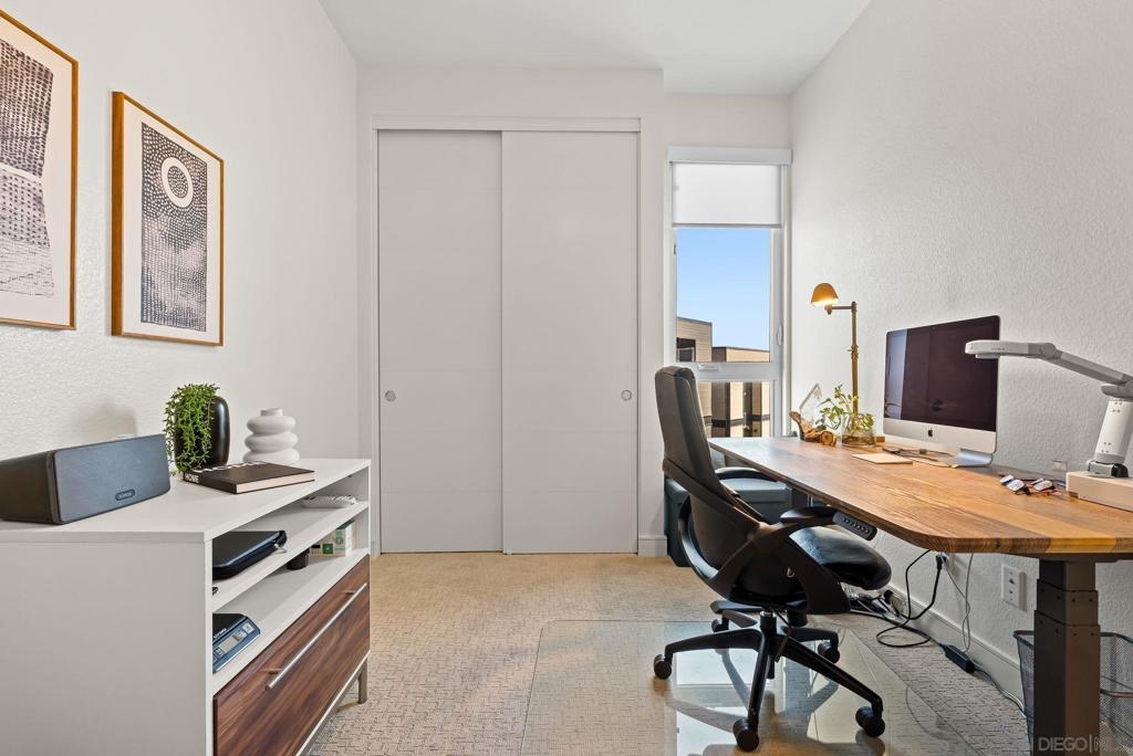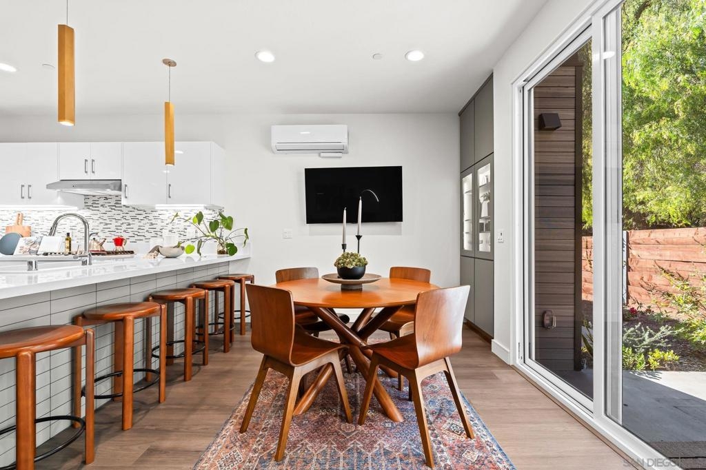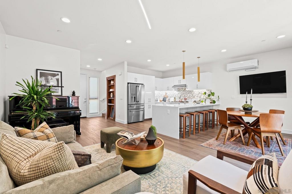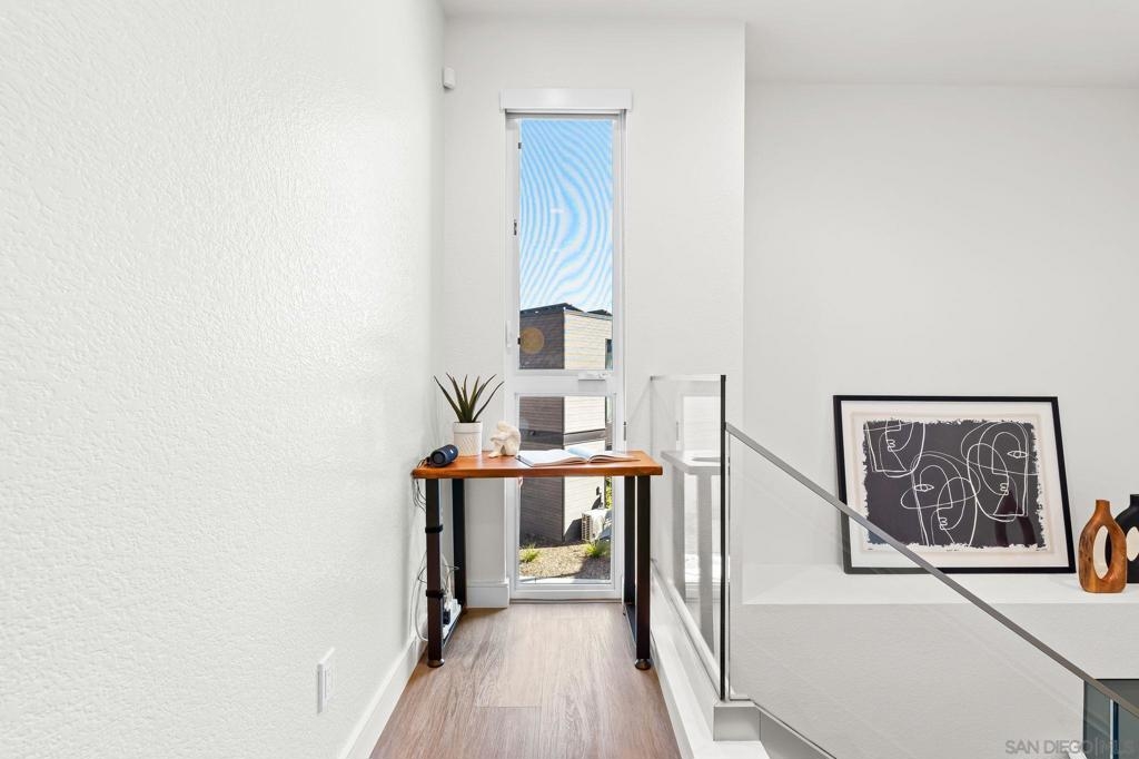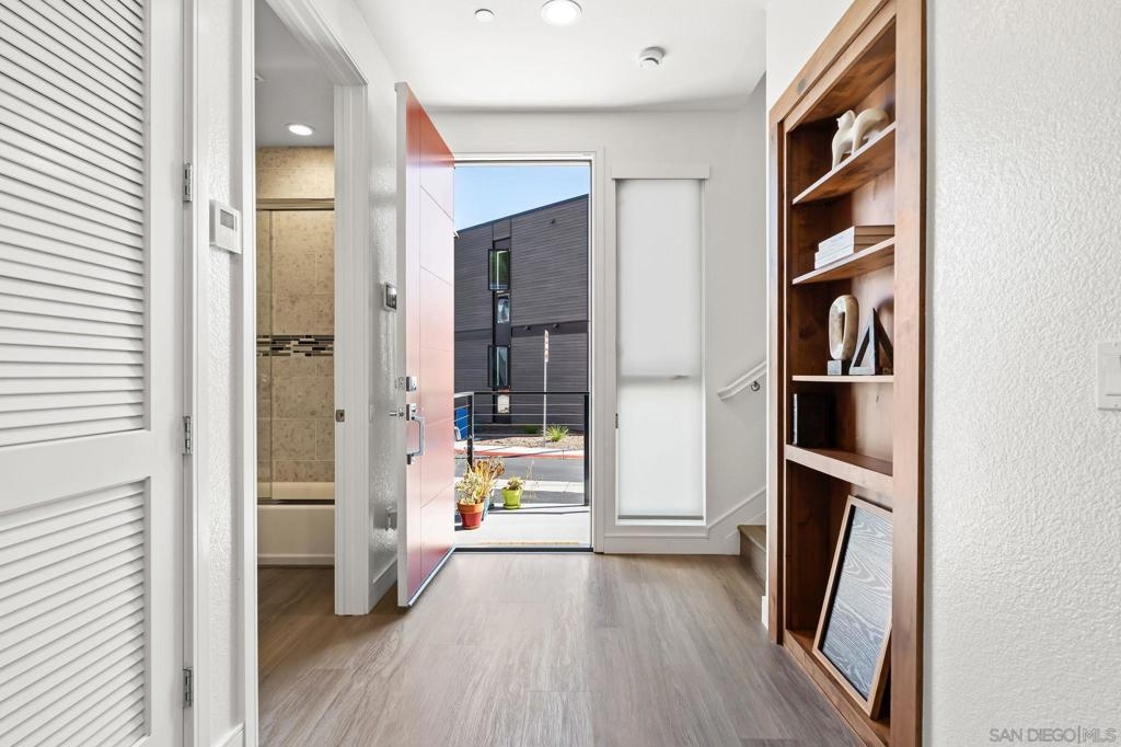Cantera is one of La Mesa’s coolest hillside enclaves with one way in and out for privacy and just minutes from downtown! Built in 2024 this La Mesa premier detached upgraded home features soaring ceilings, LED lighting, and panoramic dual-pane windows in an open-concept layout. The gourmet kitchen boasts GE Café appliances, quartz countertops, custom cabinetry, and premium fixtures. This open floor plan is perfect for every day living and for entertaining. Owners have added custom built-ins, smart home tech, and designer finishes for a truly refined space. Eco-friendly amenities include fully-owned solar panels, a Tesla EV charger, tankless water heater, upgraded Samsung single unit washer/dryer and energy-efficient HVAC. Enjoy private outdoor living with a covered carport, scenic patio, and custom landscaping in a low-density, HOA-maintained community. Walk to La Mesa Village, Collier Park, and Spring Street Trolley—plus quick freeway access. Upstairs, you'll find spacious bedrooms with upgraded storage and a modern bath featuring luxury tile and sleek fixtures. Discover Cantera—upgraded luxury, green living, and hillside charm, move-in ready!